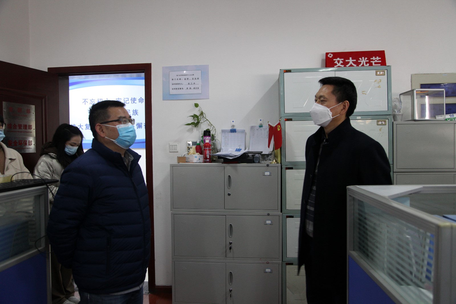 冉兰平一行经过物业、公司扫码亮码、测温、消毒、登记等疫情防控关键环节,沉浸式体验了对外来人员的疫情管控措施。随后进入公司,随机抽问员工是否了解公司防控要求和个人防护措施,对公司开展疫情防控工作宣贯及防护知识宣传的落实情况进行检验;对员工口罩佩戴、防疫物资储备、消毒液存放状态等情况进行实地查看;着重对公司疫情防控中责任落实、防控具体要求、人员管理、信息报送、场所防疫管理等措施及执行情况进行详细了解,并查看相应文件资料。