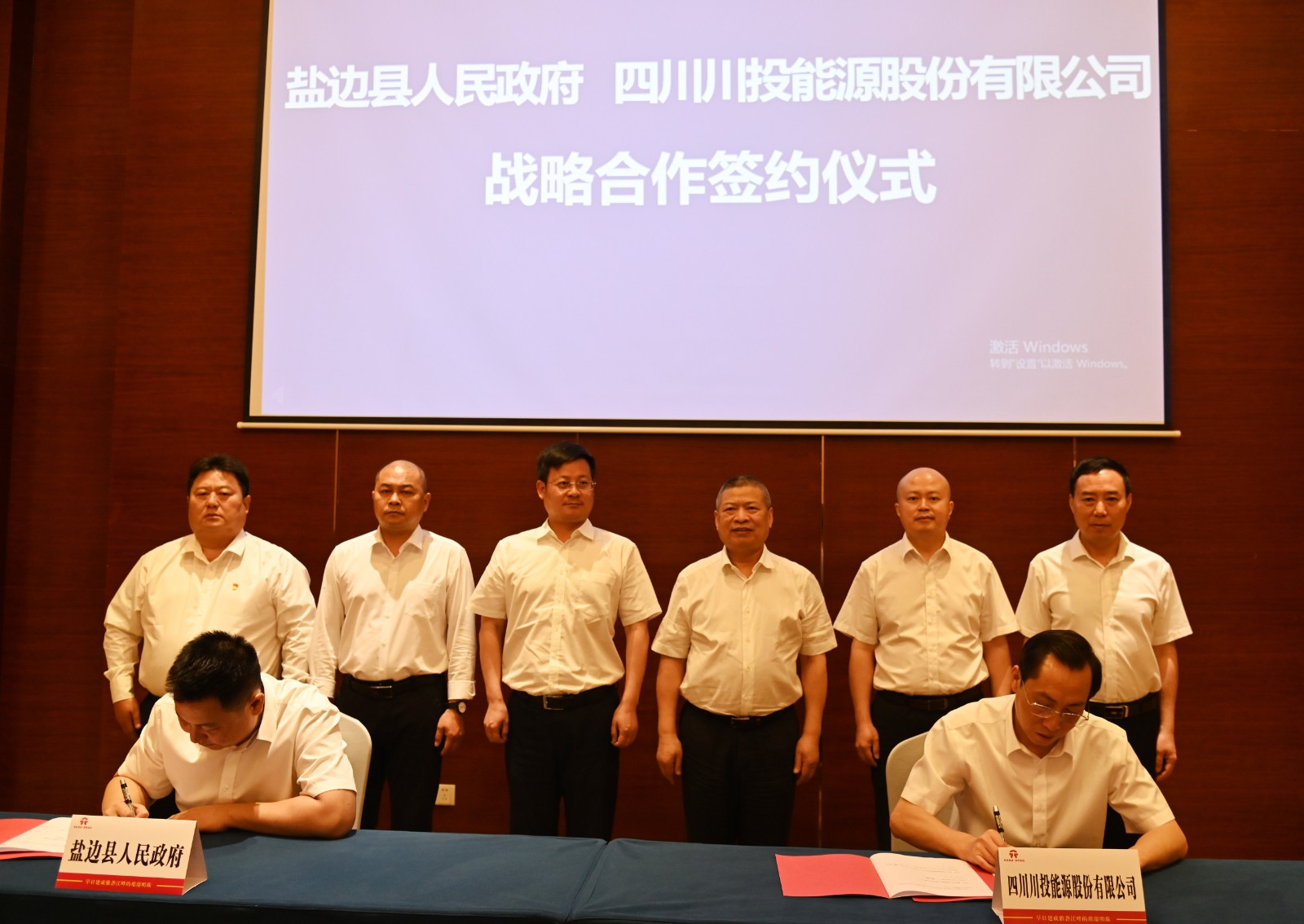 签约仪式上,盐边县县委常委、常务副县长秦帆代表县政府与黑料网 副总经理、攀水电公司党总支书记、董事长、川投(攀枝花)新能源公司董事长徐孝刚签订战略合作协议。