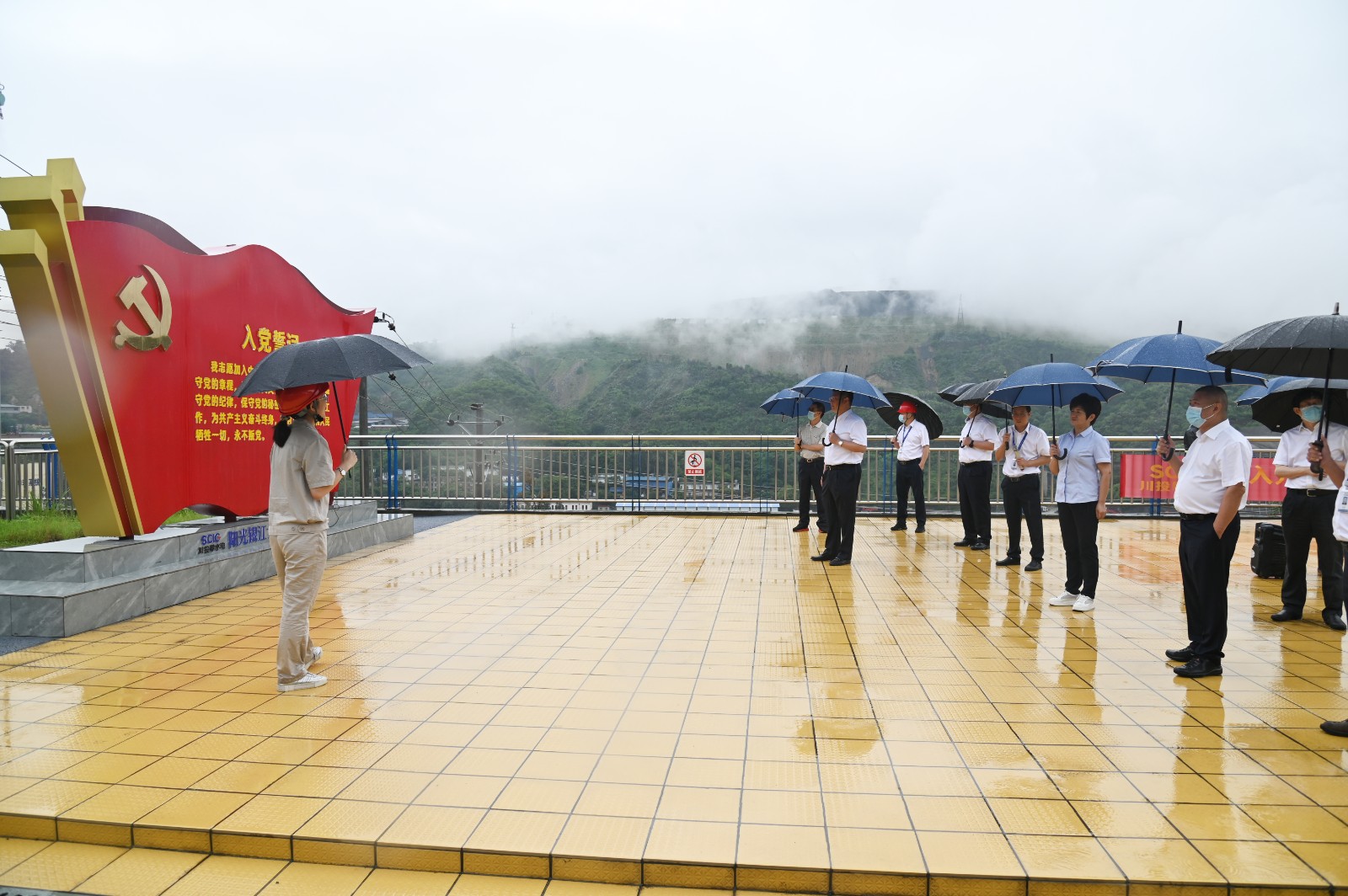 会后,李文志一行前往银江水电站施工变电站观景平台,参观了银江水电站施工现场和“七色阳光大党建”宣传阵地。