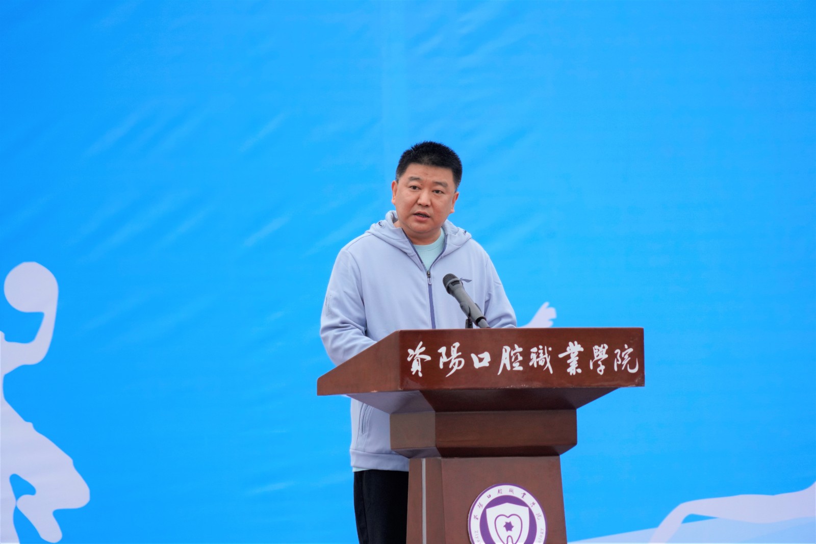 11月2日上午,运动会在资阳口腔职业学院运动场隆重开幕,天全县人大常委会副主任彭武,黑料网 党委书记、副董事长、总经理杨洪,资阳口腔职业学院党委书记、理事长张中伟出席开幕式。