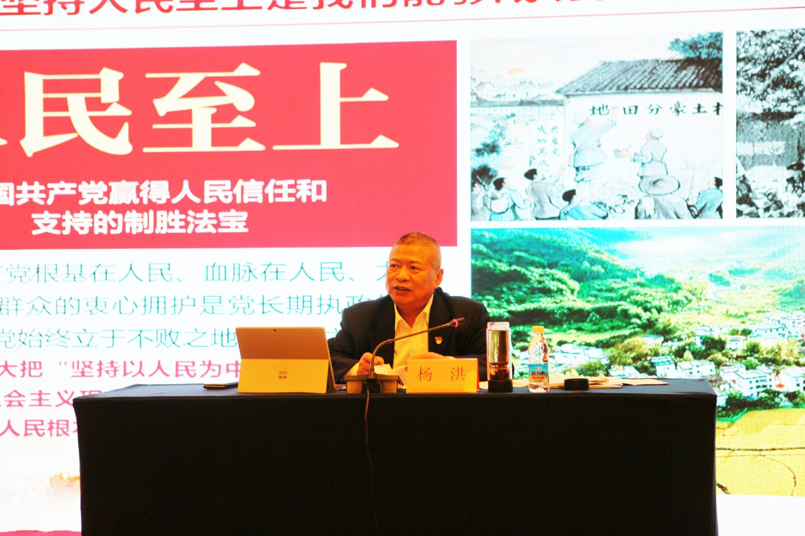 杨洪以《学习党的历史决议,汲取党的历史经验,以强烈的历史主动精神推动高质量发展》为题,围绕党的三个历史决议的制定背景、主要内容、逻辑关系、战略价值等方面讲授“开班第一课”。他指出,重视历史、借鉴历史,是我们党在长期实践中形成的优良传统和政治优势。他强调,党的三个历史决议深刻揭示了党的历史发展的主题主线、主流本质、规律认识,广大党员干部要深入学习、融会贯通,特别是对党的第三个决议关于“十个坚持”的历史经验总结要倍加珍惜、始终坚持,不断坚定历史自信、把握历史规律、掌握历史主动,把学习成效转化为干事创业的动力,在新的赶考之路上跑出加速度、创造新辉煌。