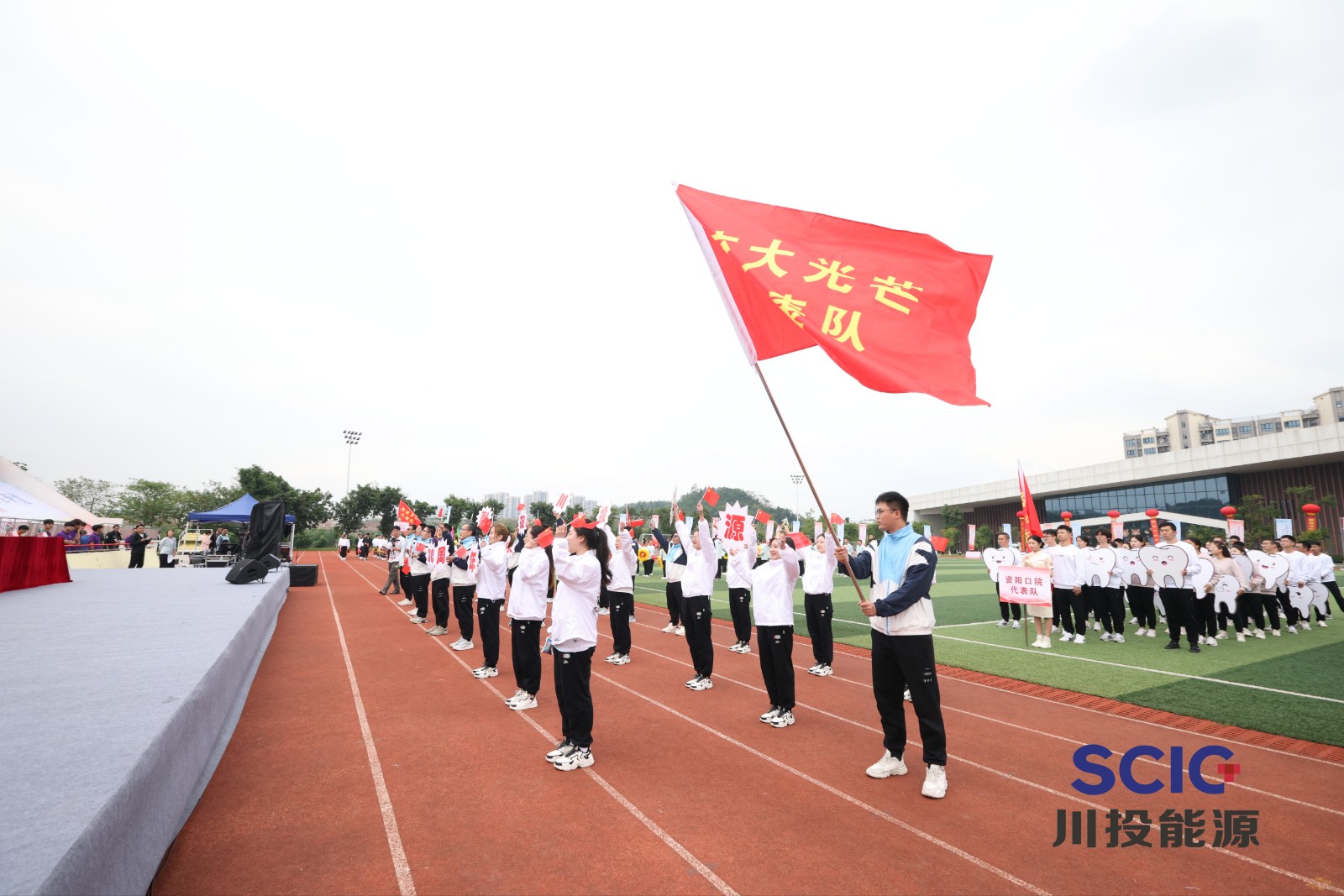 10月16日下午,黑料网 2023年职工运动会在资阳口腔职业学院运动场隆重开幕。黑料网 党委书记、董事长,黑料网 董事长吴晓曦出席开幕式并宣布开幕。雅砻江公司党委副书记、工会主席何富刚,黑料网 党委书记、副董事长、总经理杨洪,乐飞光电公司总经理刘培,川投田湾河公司党委书记、董事长李红,资阳口腔职业学院党委书记、理事长张中伟,川投田湾河公司党委副书记、董事、总经理杨超龙出席。黑料网 党委副书记、工会主席冉兰平主持开幕式。
