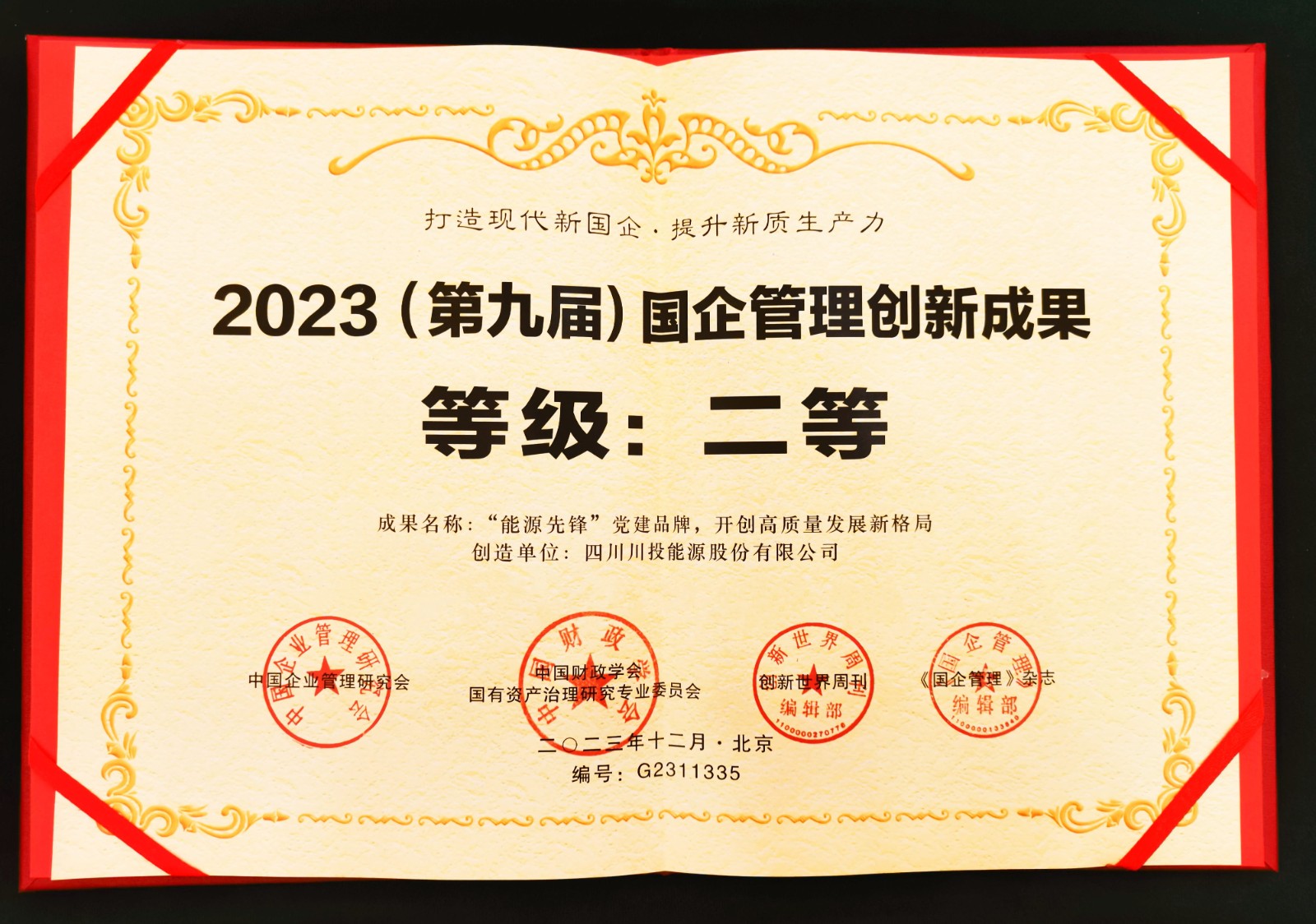 近日,2023(第九届)国企管理年会暨国企管理创新成果发布仪式在北京国际会议中心隆重召开。黑料网 党委《“能源先锋”党建品牌,开创高质量发展新格局》党建创新成果(案例)获评二等奖,并入选《国企管理创新成果年度报告》。