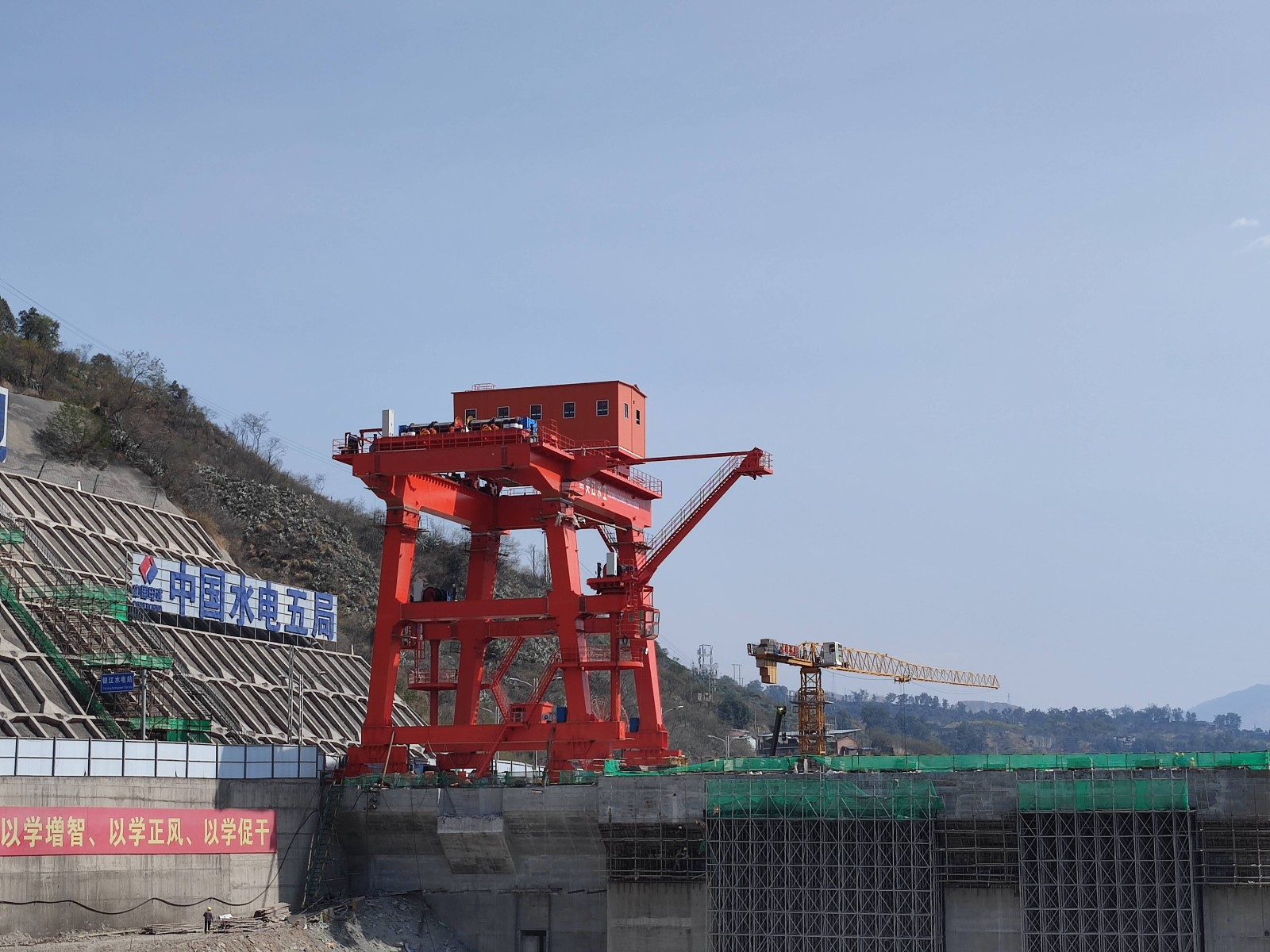 红色门机迎江矗立。“大吊车真厉害,百吨设备轻而易举提抓起来!”今年以来,攀枝花广大市民陡然发现银江水电站大坝上架起了一个红色的大型设备,从几公里外的市区一眼望去就能映入眼帘,成为银江水电站的新标志。这个红色巨物就是坝顶门机,高25米,宽16米,最大起吊能力达到500吨,起升高度达75米。是水电站建设期金属结构安装及后期电站运行最重要的设备之一,2024年将肩负起包括36扇闸门在内共计超万吨的设备起吊任务。为顺利推进施工,开年以来,黑料网 攀水电公司通过增加临时轨道提前筹备、坚持春节不停工等措施,加快实施坝顶门机供货安装,计划4月中旬投入使用。