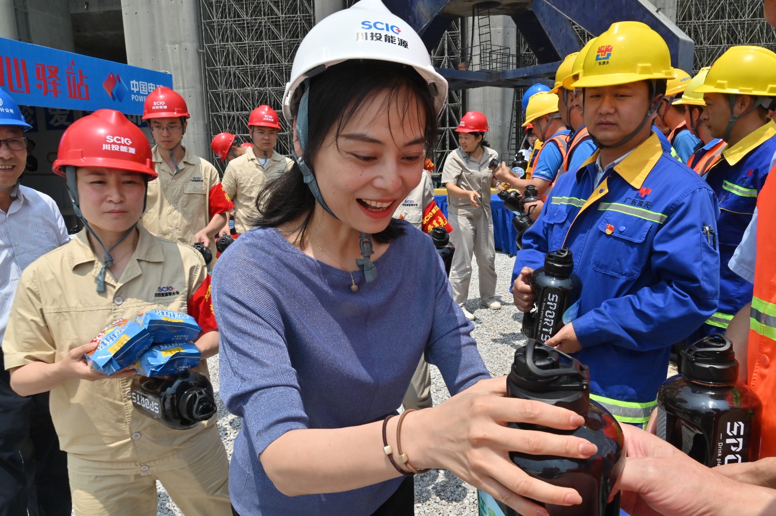 当日下午,朱莉一行对银江水电站上游围堰、基坑厂房坝段等防汛防灾重点领域进行了现场检查,听取工程建设情况,并为银江水电站工地“爱心驿站”进行揭牌,为一线建设者们送上夏季清凉物品和诚挚问候。