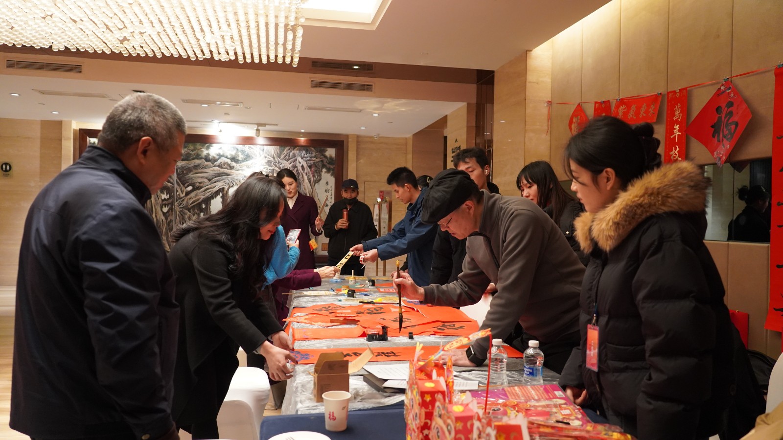 案桌上,笔墨凝香,职工们纷纷挥毫泼墨,现场创作了一幅幅新春对联和剪纸画。红纸黑字,一个个“福”字跃然纸上,风格多样的春联传递着温暖与喜庆。每一笔、每一划都融入了职工们对新春的祝福与美好期许,为即将到来的新年增添了浓厚的文化氛围。