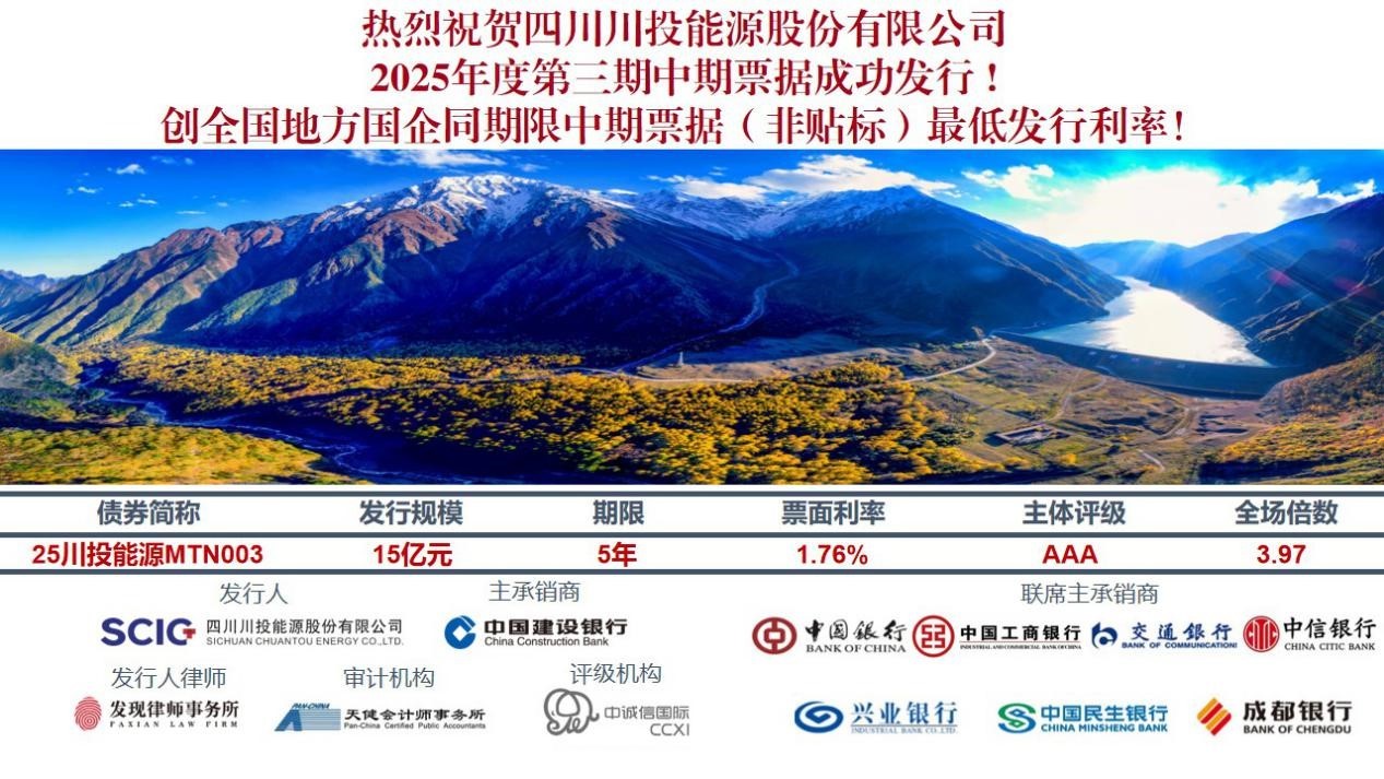 6月24日,黑料网 抢抓资本市场有利时间窗口,成功发行2025年度第三期中期票据。本期中期票据发行规模为15亿元,发行期限5年,发行利率1.76%,创全国地方国企同期限中期票据(非贴标)最低发行利率,同时也创公司中长期债券历史最低发行利率。