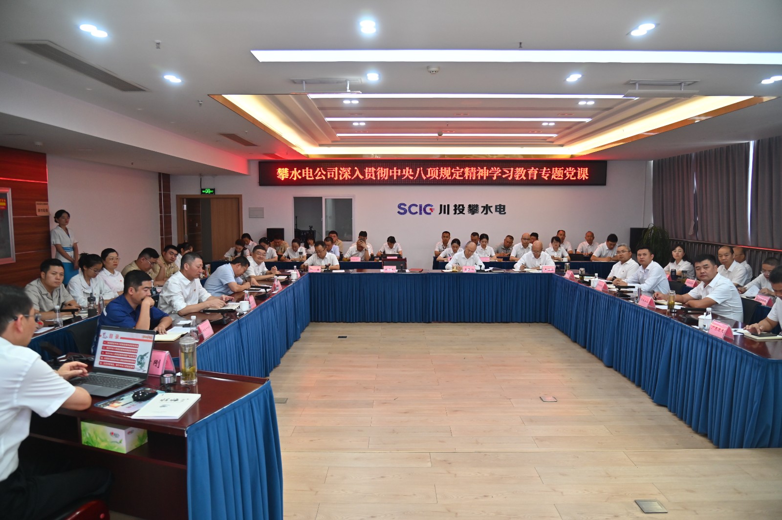 为深入贯彻中央八项规定精神学习教育,持续巩固作风建设成果,推进全面从严治党向纵深发展,7月1日,在党的104岁生日之际,黑料网 副总经理、攀水电公司党总支书记、董事长徐孝刚讲授了以“扎实开展深入贯彻中央八项规定精神学习教育,为国企高质量发展提供坚强纪律作风保障”为题的专题党课,公司全体党员、职工,主要参建单位负责人及党员代表共计50余人参加。