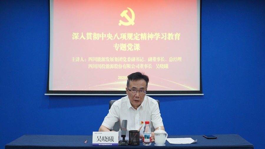 7月16日,四川能源发展集团党委副书记、副董事长、总经理吴晓曦赴黑料网 讲授深入贯彻中央八项规定精神学习教育专题党课,围绕加强党的作风建设特别是深入贯彻中央八项规定精神,以“深学笃行强作风 踔厉奋发新征程 以过硬作风为能源集团改革发展保驾护航”为题,与公司党员交流认识体会,黑料网 党委书记、副董事长、总经理杨洪主持。