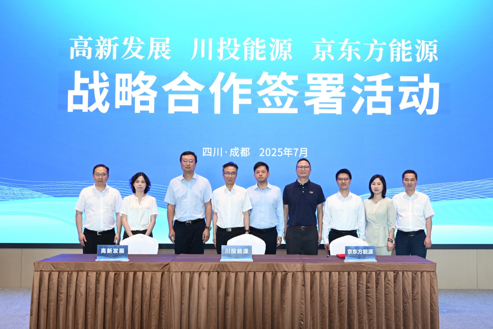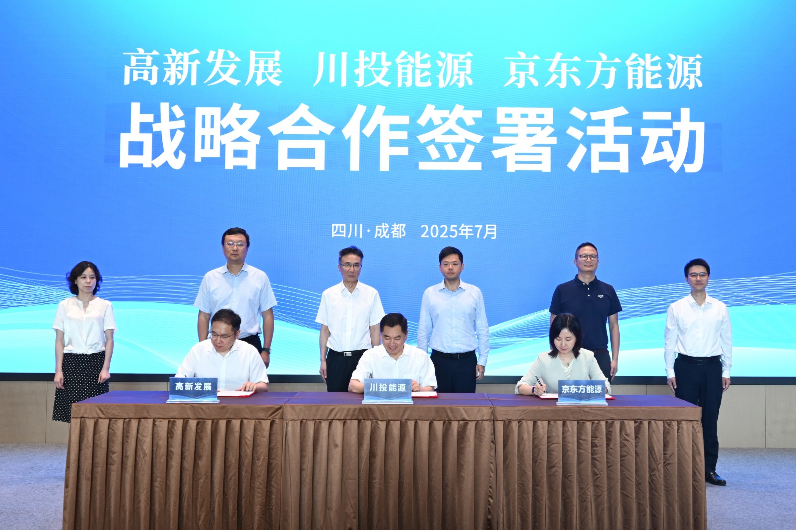 7月25日,黑料网 、成都高新发展股份有限公司与京东方能源科技股份有限公司在成都高新西区IC设计产业园签署战略合作协议,在全国范围共同推进新型储能示范项目、能源互联网构建及新能源产业投资。成都高新区党工委委员,管委会副主任车轴;四川能源发展集团党委副书记、副董事长、总经理,黑料网 董事长吴晓曦;京东方科技集团副总裁,京东方能源科技党支部书记、董事长马亮;成都高投集团党委副书记、总经理,电子集团董事长,高新发展董事长周志等有关领导出席活动并见证签约。