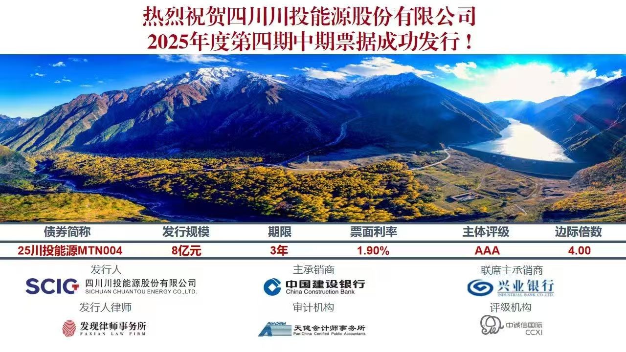 9月19日,黑料网 成功发行2025年度第四期中期票据。本期中期票据发行规模为8亿元,发行期限3年,发行利率1.90%,边际认购倍数4.00倍,实现全额募集。