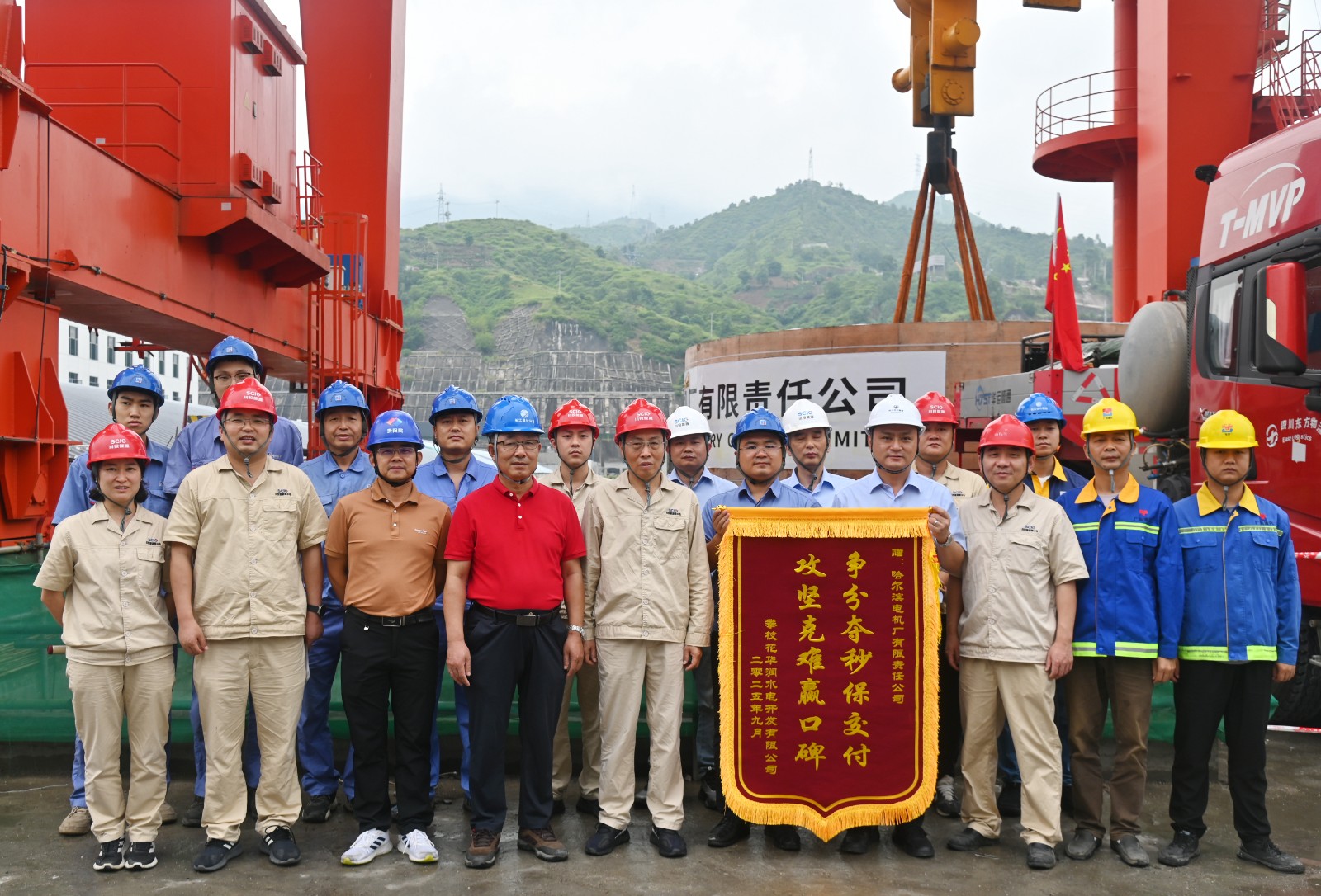 26日上午,现场各单位立即投入到吊装前的准备工作中。攀水电公司全程跟进机电安装进展,逐一确认安装条件;施工单位技术人员按吊装方案全面落实安全交底与技术措施,确保万无一失;在各项准备工作全面就绪的基础上,6号机组的转子支架平稳、精准吊装就位。黑料网 副总经理、攀水电公司党总支书记、董事长徐孝刚现场督导吊装工作,充分肯定了哈电公司在本次极端条件下的运输成绩,并向哈尔滨电机厂有限责任公司授予锦旗,感谢其长期以来对银江水电站建设的大力支持。