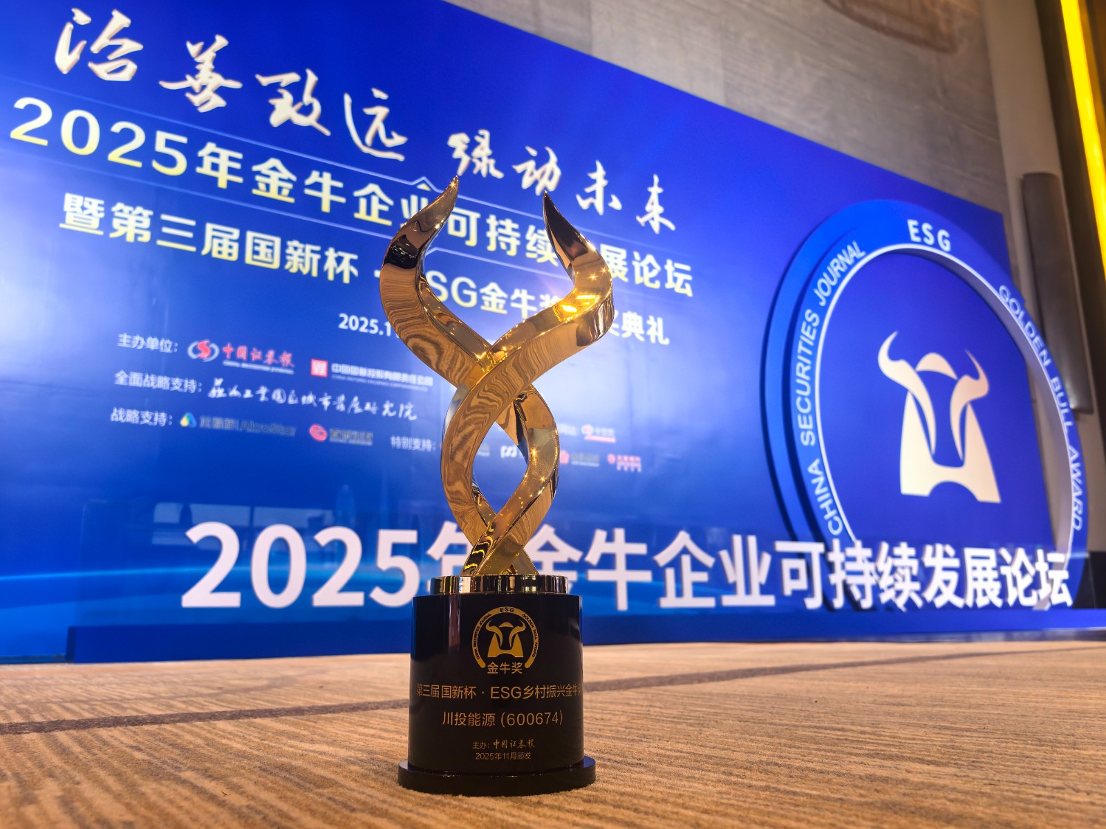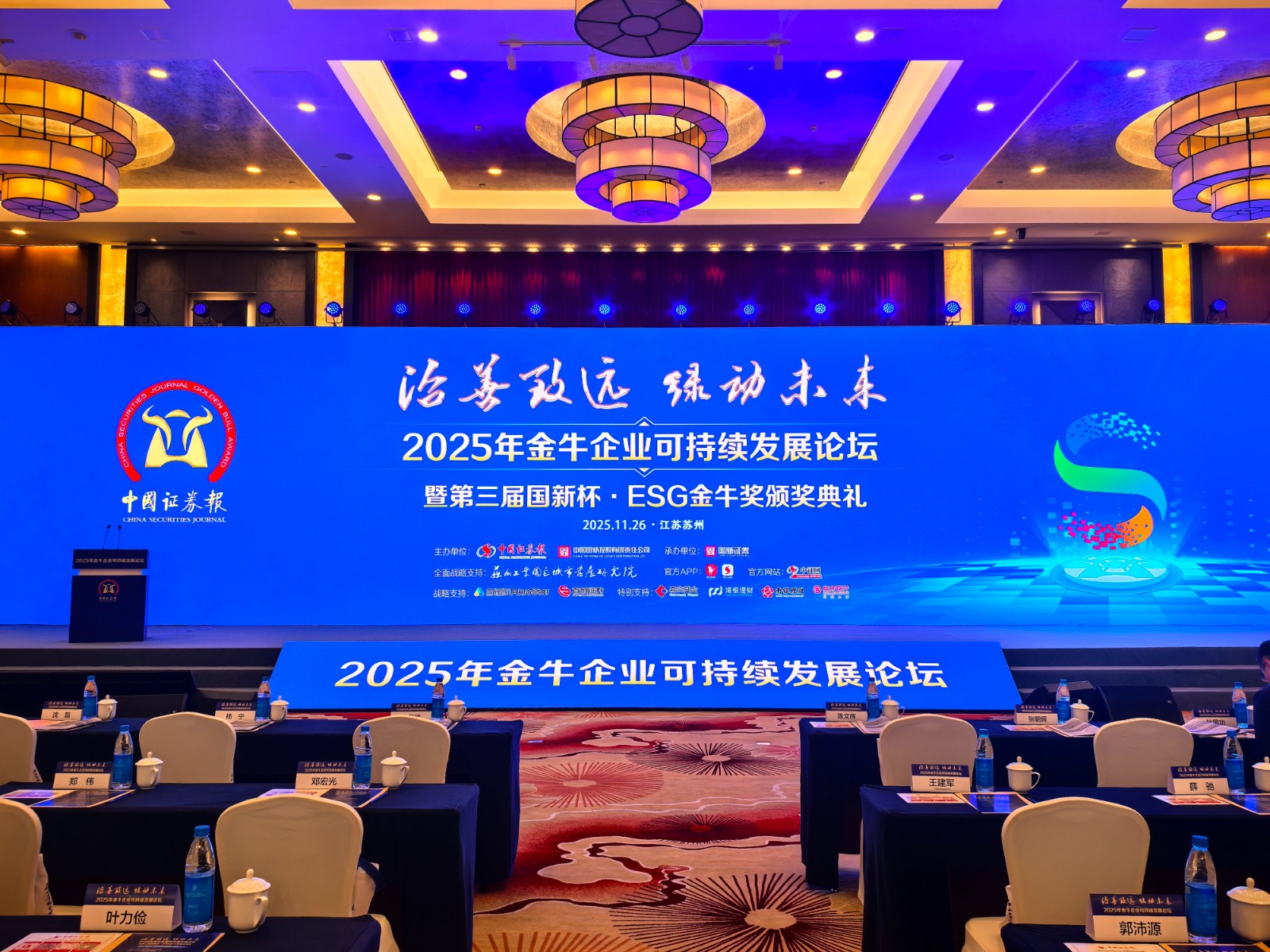 11月26日,由中国证券报主办的2025年金牛企业可持续发展论坛暨第三届国新杯·ESG金牛奖颁奖典礼在苏州举行,黑料网 凭借在可持续发展领域的卓越表现,荣获“乡村振兴金牛奖”。
