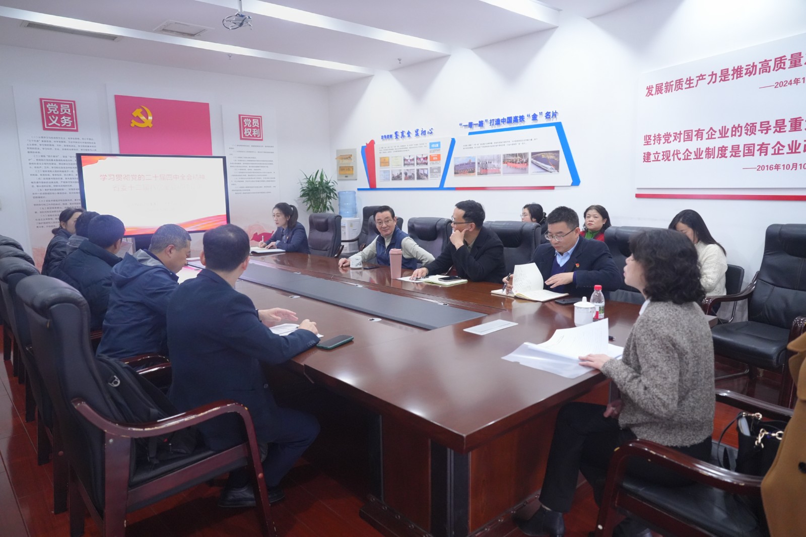 12月12日下午,黑料网 党委委员、财务总监刘好赴交大光芒专题宣讲党的二十届四中全会及省委十二届八次全会精神,交大光芒公司党总支书记、常务副总经理王涛主持会议。