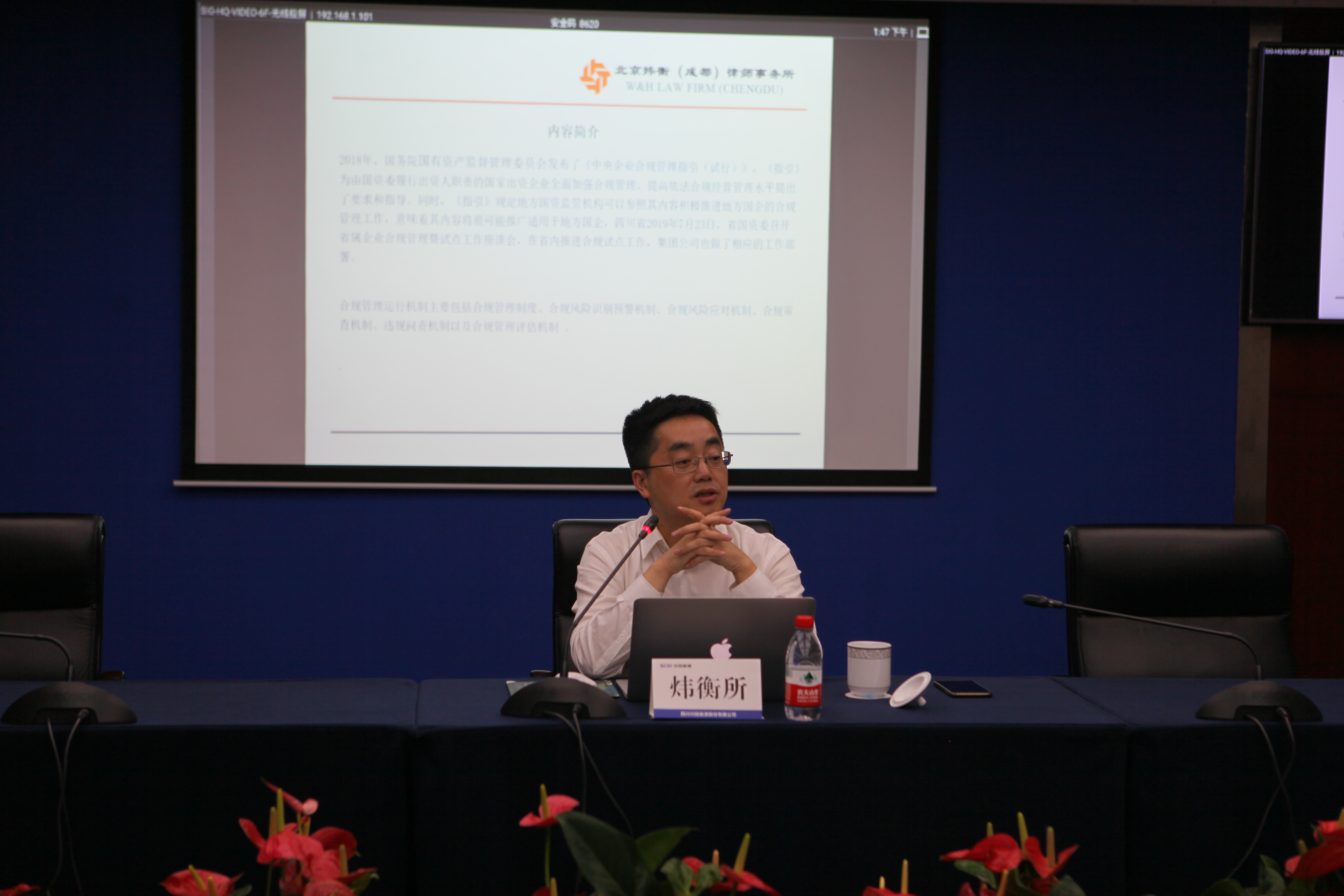 会后,北京炜衡(成都)律师事务所张强律师作合规管理专题培训。公司本部全体员工、各所属公司主要领导、分管法治建设(合规管理、风险防控)的负责人及法务工作人员共计60余人以现场和视频会议方式参会。