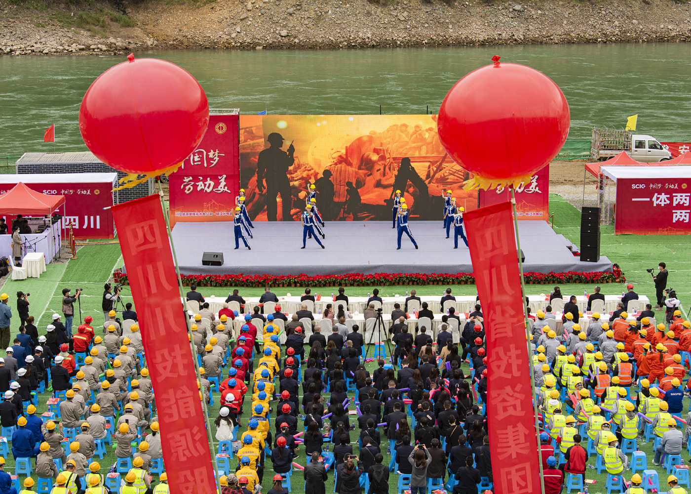 11月3日,在美丽的金沙江畔银江水电站C2标施工现场,四川省总工会以“中国梦·劳动美”为主题,组织东方茉莉国乐团的艺术家们为一线劳动者们献上了一场精彩绝伦的视听盛宴,本次演出同步进行了网络直播,超过10万人进行网络观看。