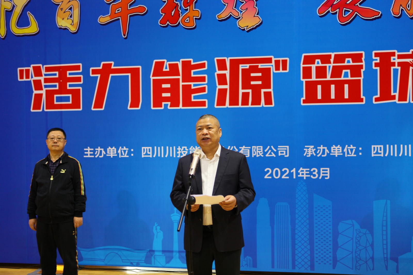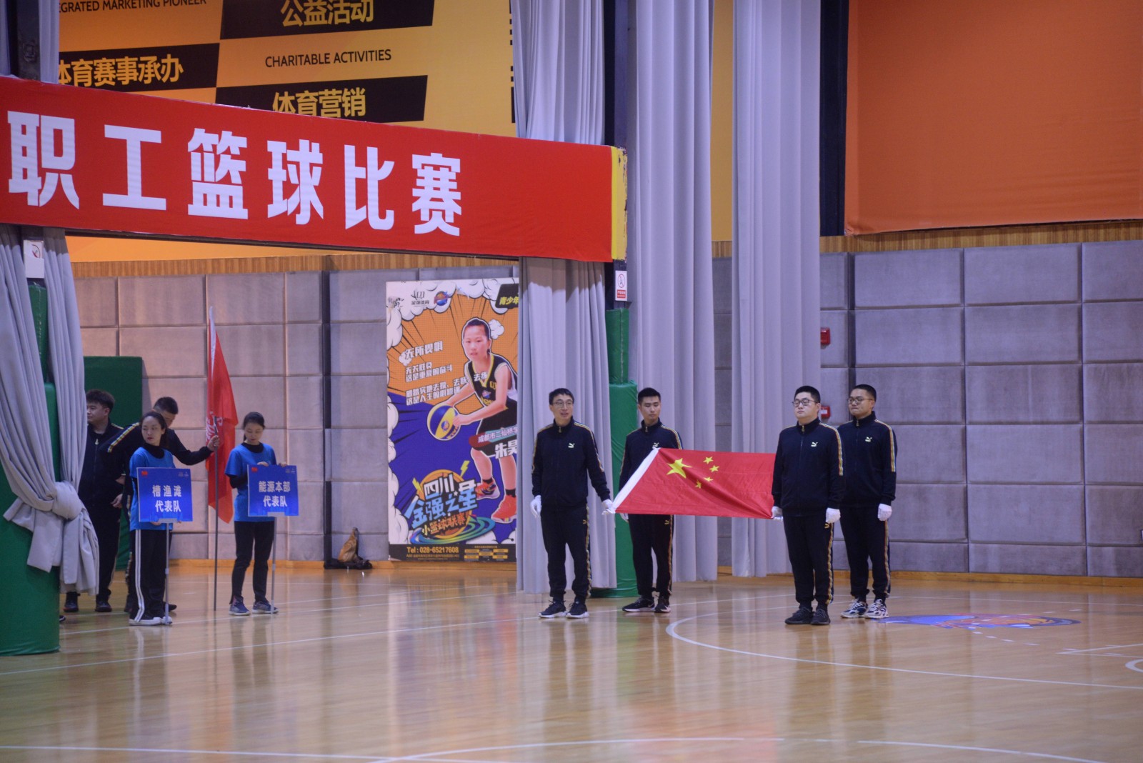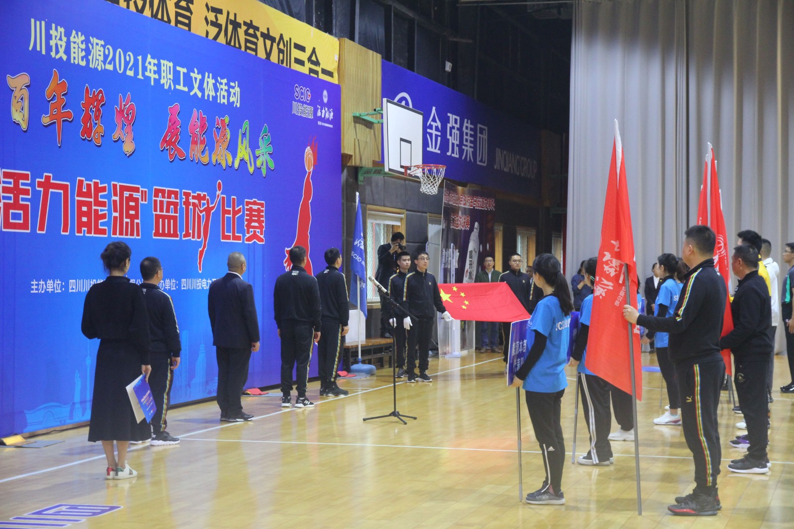 活动开始,伴随着运动员进行曲,国旗方队和参加队伍依次进入会场。随后举行了庄严的升国旗、唱国歌仪式,运动员代表、裁判员代表先后宣誓。川投电力公司党委书记、总经理魏华代表此次篮球比赛的承办方作简要发言。