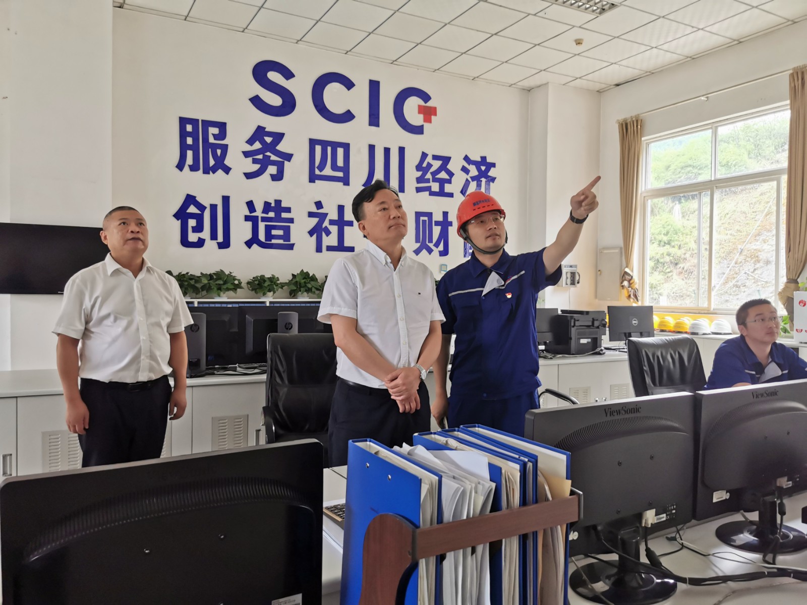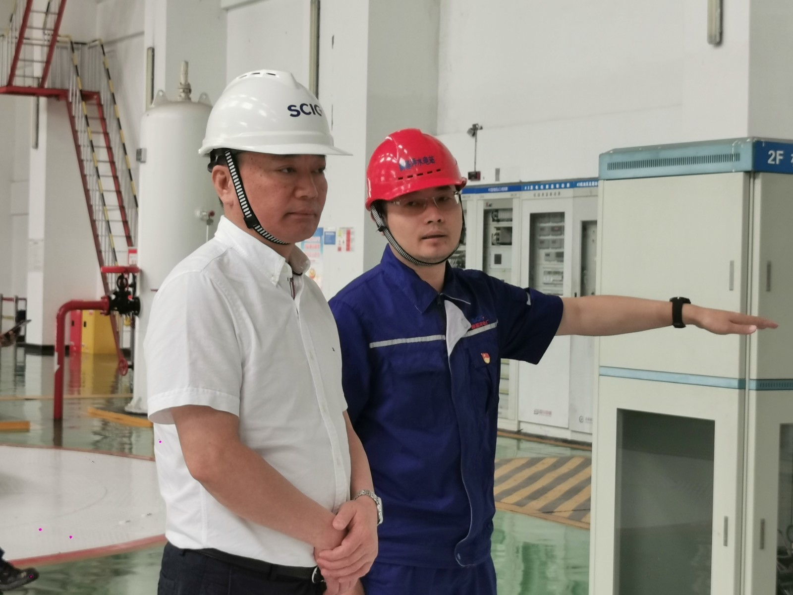 李明舟一行对脚基坪电站主厂房、中控室等实地进行了检查和指导,听取了电厂关于党建、党风廉政和生产经营等有关情况的汇报。