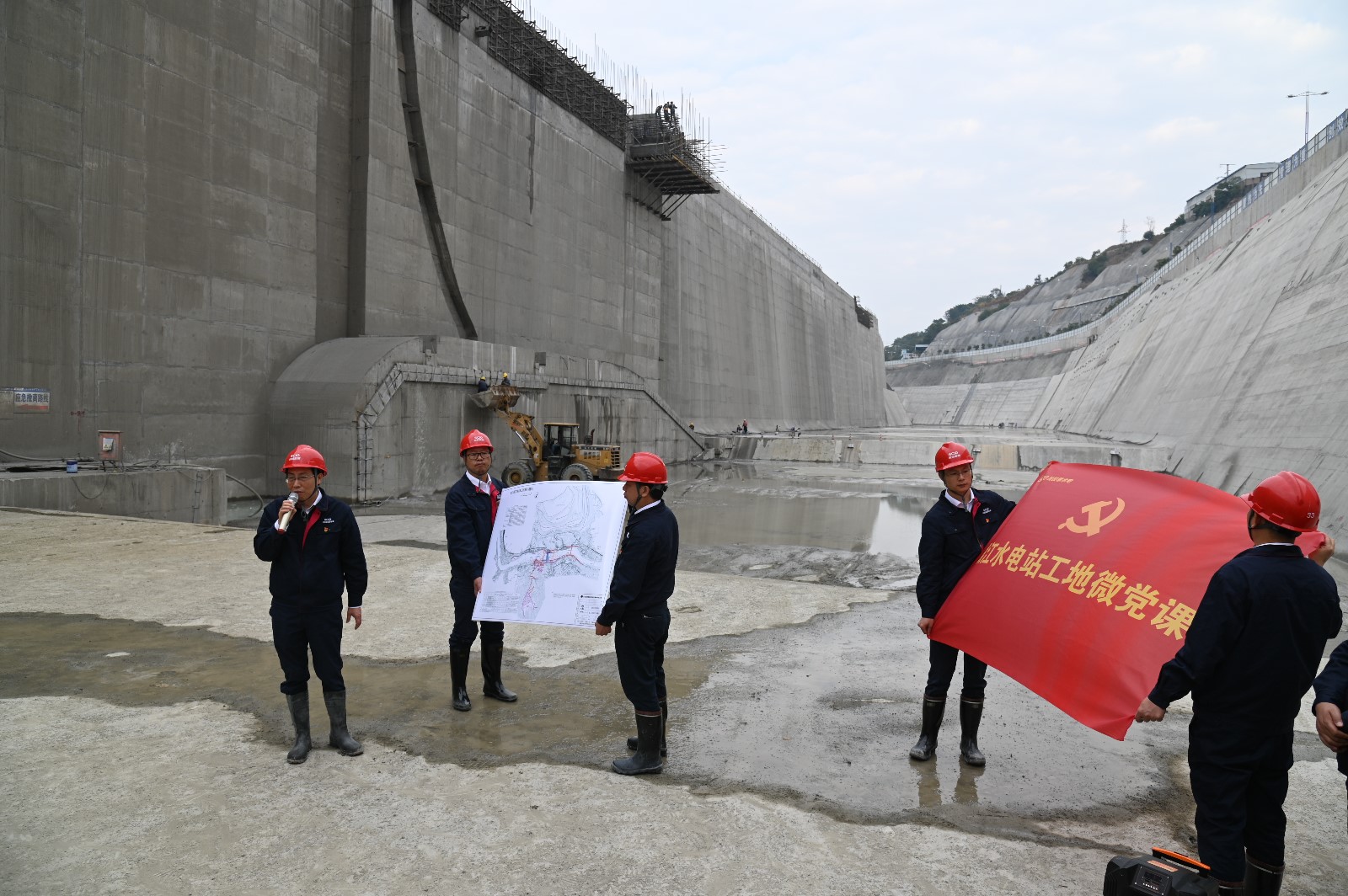 在银江水电站导流明渠过流和大江截流来临之际,为持续推进“我为群众办实事”活动走深走实,不断激励党员同志不忘初心、奋勇前进,12月2日,攀水电公司党总支组织开展了“我为银江办实事”主题党日活动。黑料网 副总经理、攀水电公司党总支书记、董事长徐孝刚在导流明渠基坑讲授微党课,并带领大家开展工地大扫除,公司全体党员、职工及各参建单位联建支部党员共100余人参加本次活动。
