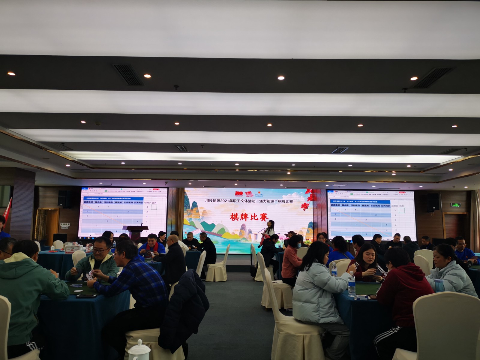 2021年12月29日-30日,在新的一年即将到来之际,由黑料网 主办,攀水电公司承办的黑料网 “活力能源”职工文体活动棋牌比赛火热开赛,此次棋牌比赛是为了在繁忙的一年之余,给大家的工作生活增添乐趣与快乐,补充活力与动力,同时增进黑料网 和所属企业间的友谊。本次比赛共有能源本部、川投电力、攀水电、交大光芒、天彭电力、槽渔滩六支代表队共70余人参加。