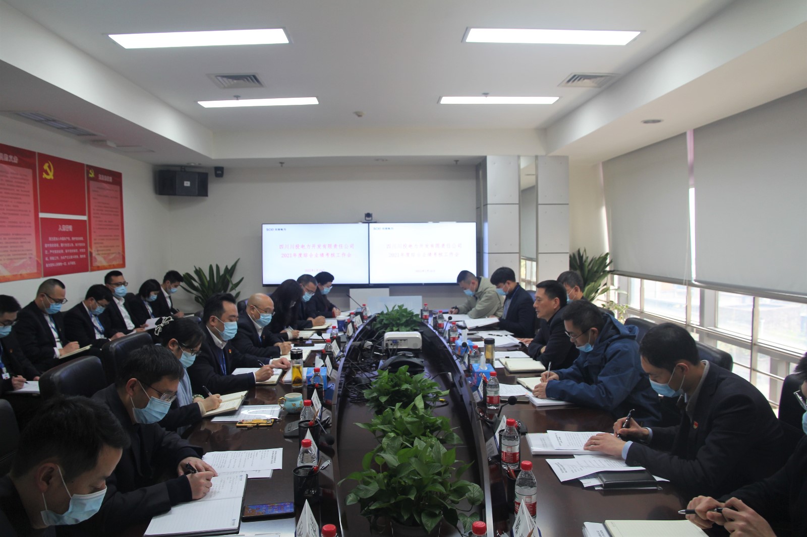 近日,黑料网 党委副书记、工会主席冉兰平率队赴川投电力开展2021年度综合业绩、纪检工作考核。公司经营班子成员、中层干部、员工代表共19人参加会议。