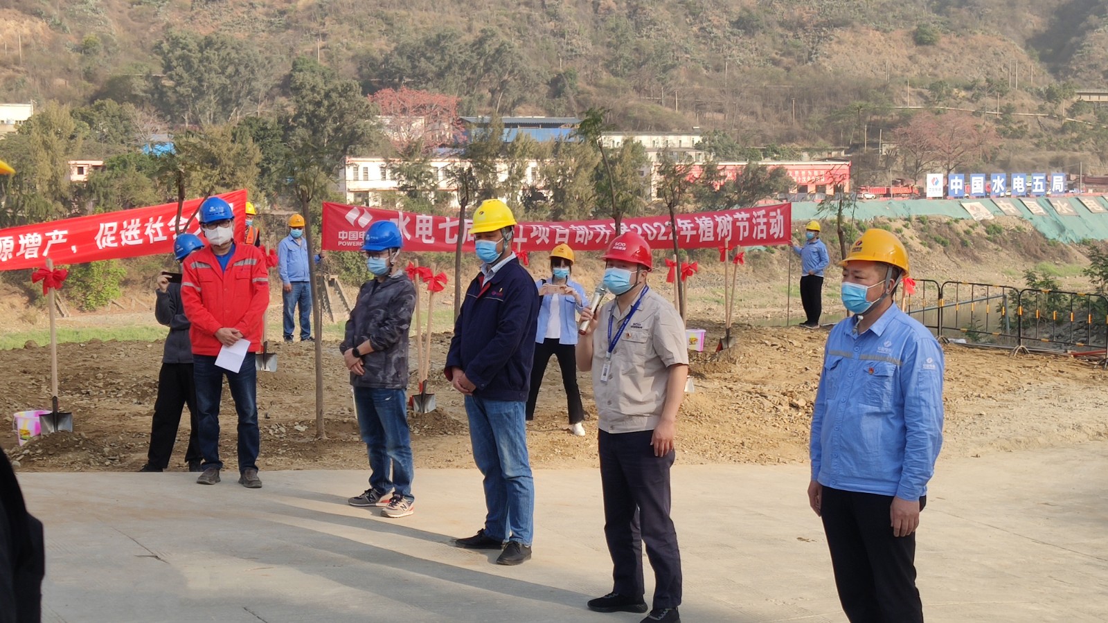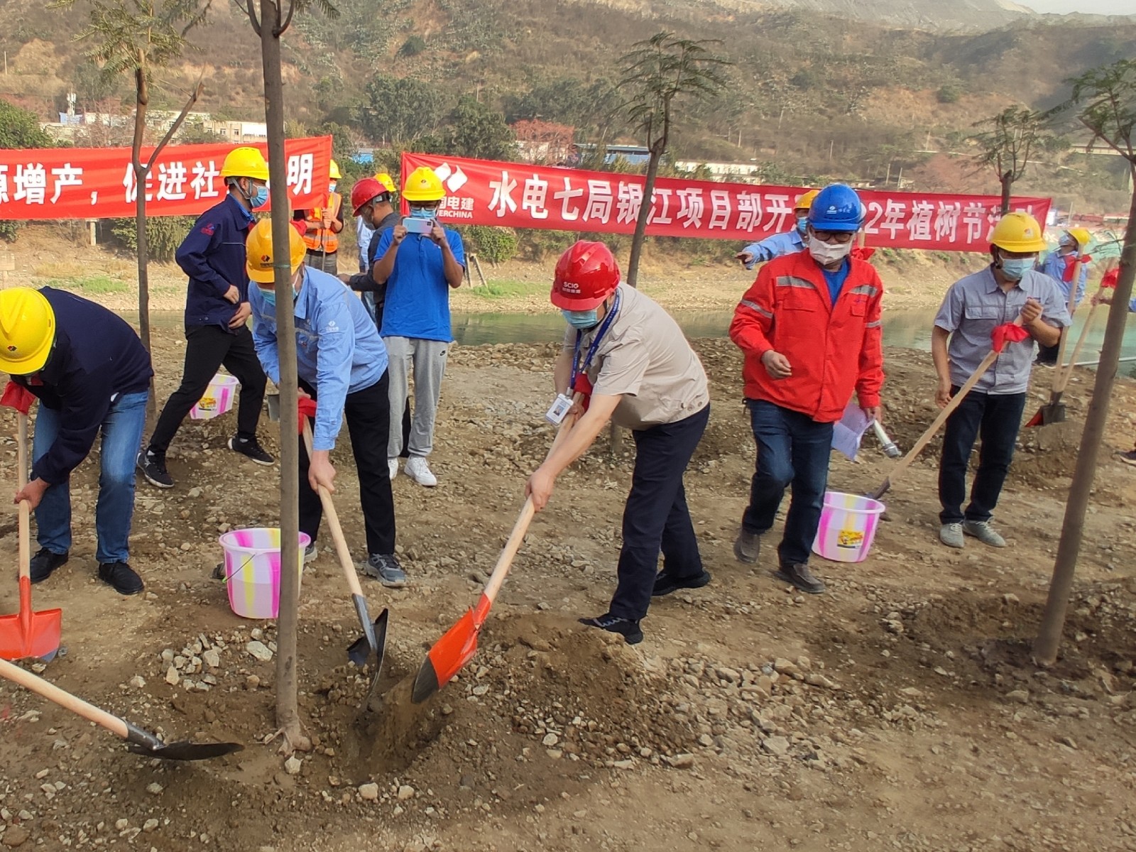 阳春三月,万物复苏。3月12日,适逢一年一度植树节,银江水电站各参建单位在金沙江边、工程施工现场空旷区域联合开展了“3.12”植树节活动。活动由攀水电公司牵头,华东院环水保监理组织,水电五局、水电七局联合承办,各参建单位共同参与。攀水电公司党总支委员、总经理吴巍屿,党总支委员、董事会秘书、工会主席邓勇与各参建单位项目主要负责人、员工代表共同种下了一颗颗象征团结友谊和绿色环保的同心树。