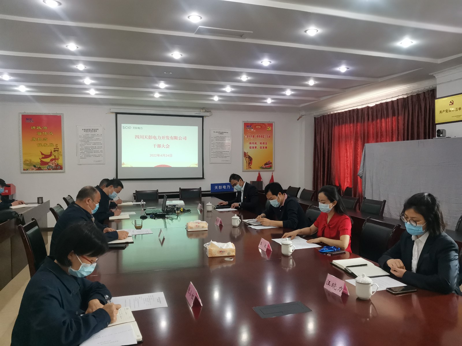 4月24日,天彭电力召开公司干部大会,黑料网 党委委员、纪委书记戴月洪、人力资源部经理王歆、纪检工作部副主任肖尧出席大会,天彭电力领导班子成员、中层以上干部参加会议,会议由王歆主持。
