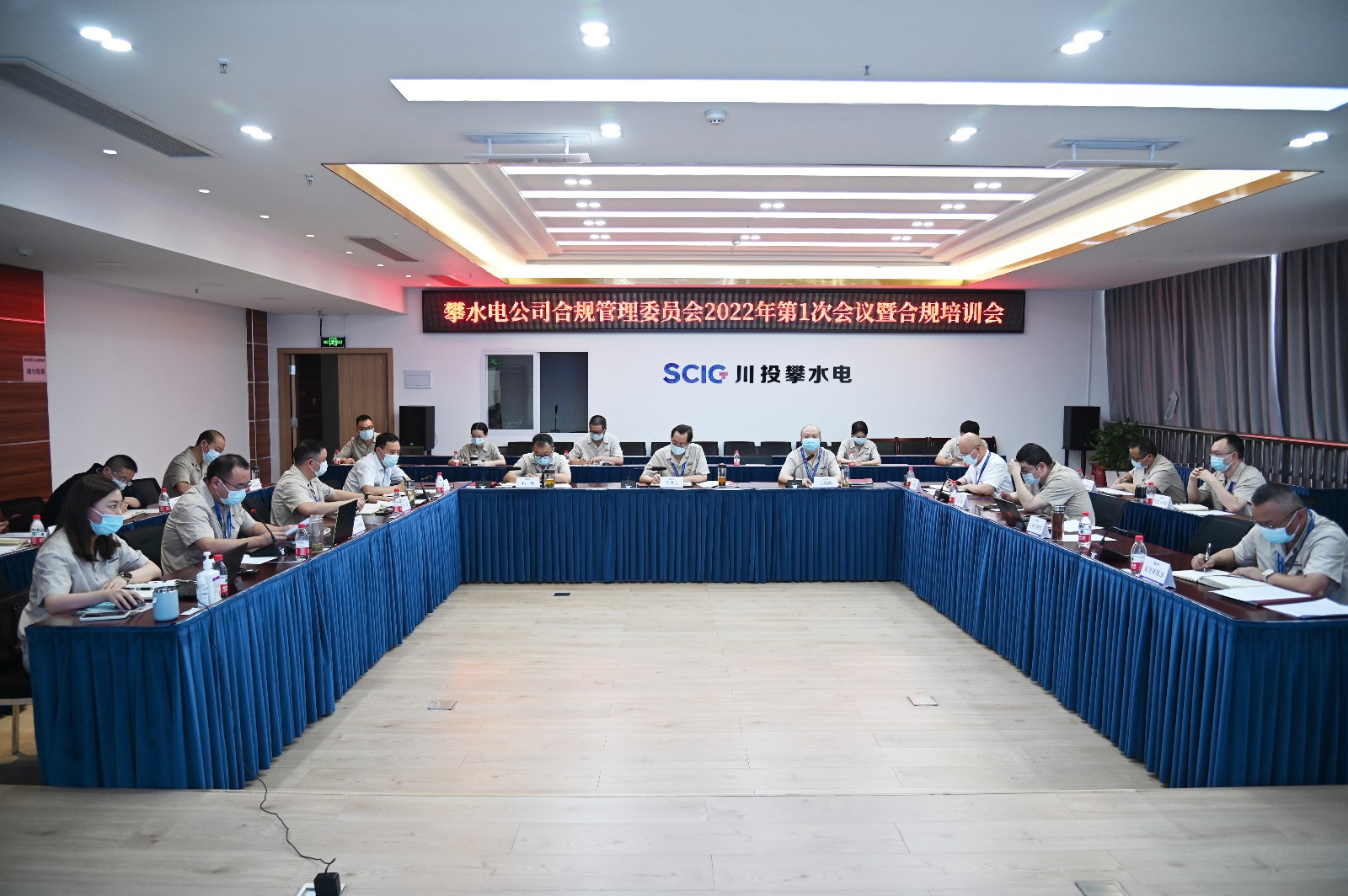 4月23日,攀水电公司合规管理委员会2022年第1次会议暨合规培训会在公司2620会议室召开。黑料网 副总经理、攀水电公司党总支书记、董事长、川投(攀枝花)新能源开发有限公司董事长、合规管理委员会主任徐孝刚出席会议并作重要讲话,攀水电公司党总支委员、总经理、合规管理委员会副主任吴巍屿主持会议,公司合规管理委员会、工作小组、合规办公室人员共计21人参加会议,会议严格落实疫情防控要求,全程佩戴口罩。