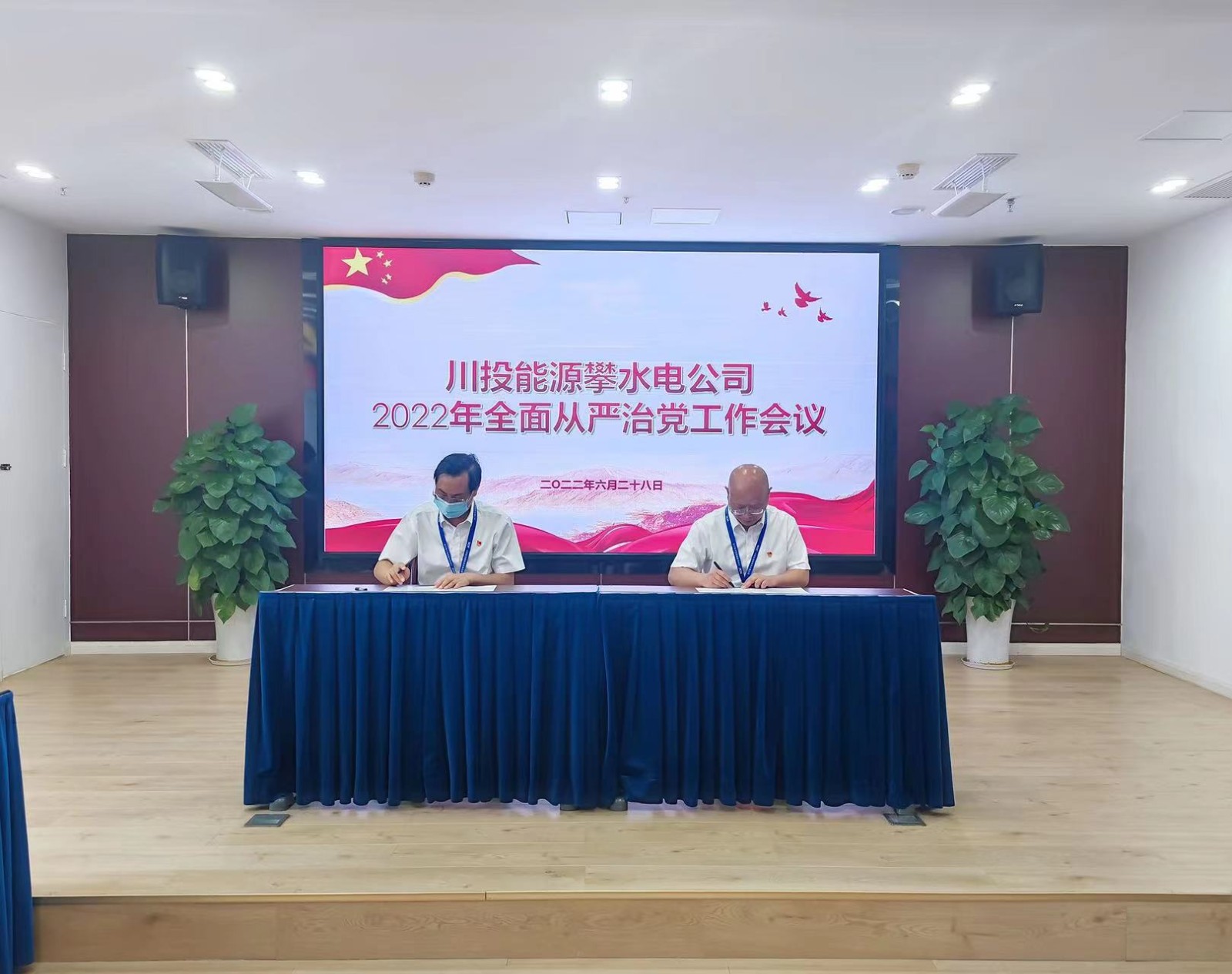 会议首先由党总支委员、董事会秘书、工会主席邓勇传达学习了黑料网 党委书记、副董事长、总经理杨洪在黑料网 2022年加强党的领导、全面从严治党工作会上的讲话,杨锐汇报了2022年上半年纪检工作总结及下半年工作打算,公司党总支委员/领导班子成员汇报了半年来“一岗双责”履责情况,黑料网 副总经理、攀水电公司党总支书记、董事长徐孝刚与领导班子成员代表财务总监王俊森现场签订了《党风廉政建设责任书》。