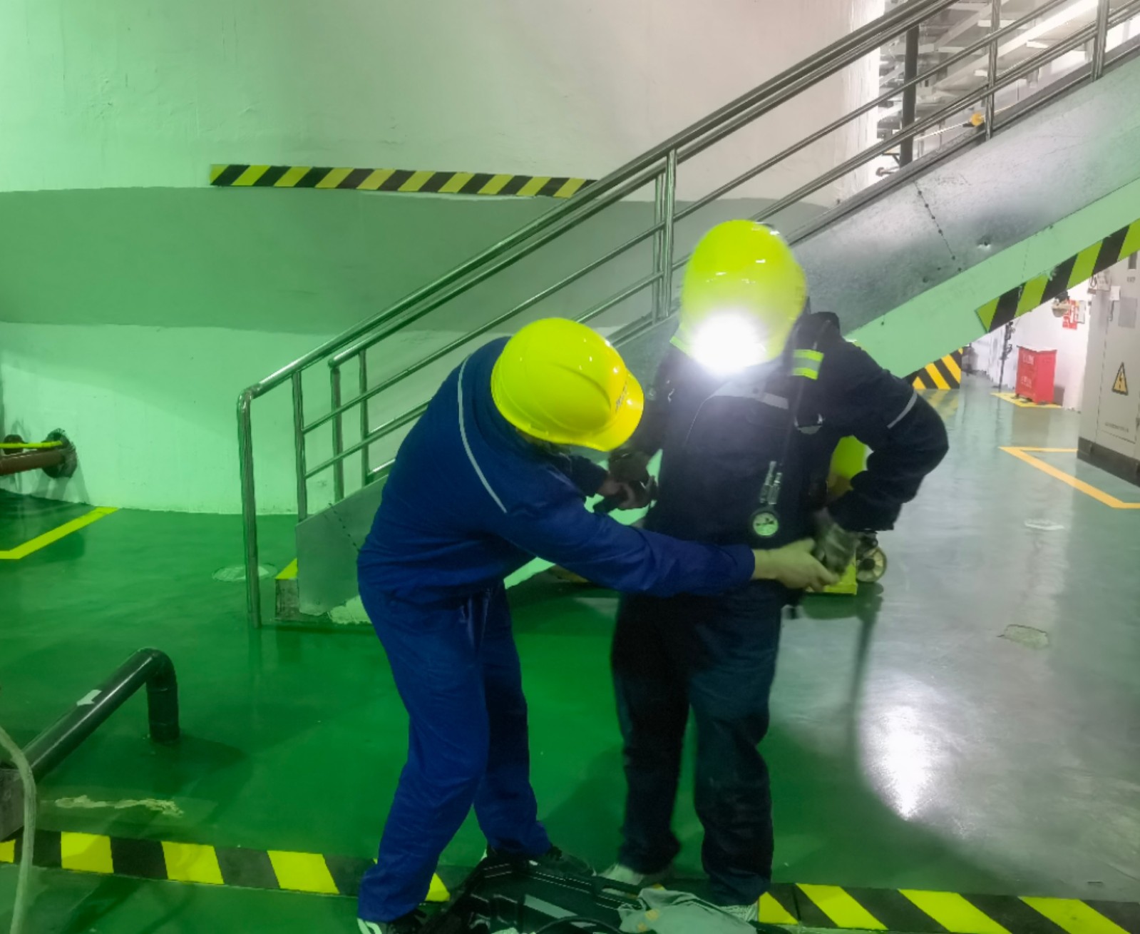 此次演练分为检验有限空间作业事故现场应急处置程序和应急救援设备设施使用两个科目。