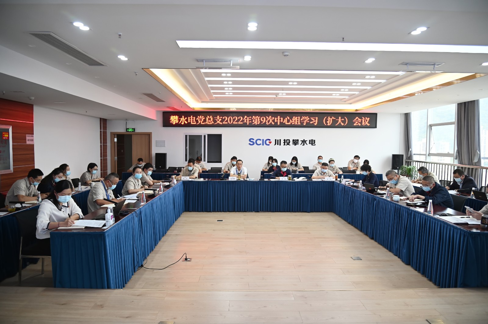 9月24日上午,攀水电公司党总支在2620会议室召开了2022年第9次中心组(扩大)学习会议,会议由黑料网 副总经理、攀水电公司党总支书记、董事长、攀新能源公司董事长徐孝刚主持,公司党总支中心组成员、联建支部书记、其他党员、统战对象、入党积极分子共30余人参加学习。本次学习主要包括第一议题学习、党史学习教育、疫情防控专题、安全环保专题、廉政警示教育五个部分。