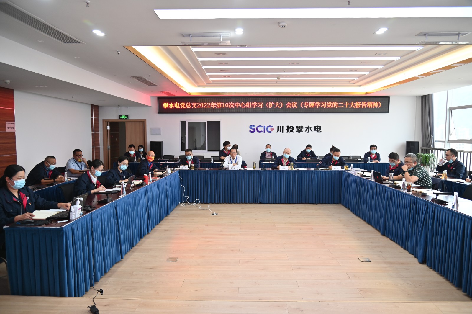 10月22日上午,在党的二十大胜利闭幕之际,攀水电公司党总支在2620会议室召开了2022年第10次中心组(扩大)学习会议,专题学习习近平总书记在中国共产党第二十次全国代表大会上的报告。会议由黑料网 副总经理、攀水电公司党总支书记、董事长、攀新能源公司董事长徐孝刚主持,公司党总支中心组成员、联建支部书记、其他党员、统战对象、入党积极分子共40余人参加学习。