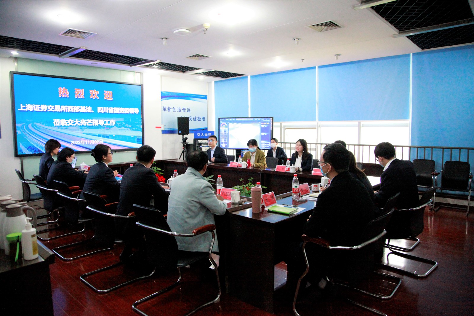 11月9日,上海证券交易所西部基地市场发展部资深专家冯晴,四川省国资委企业改革处副处长梅洁一行莅临交大光芒调研指导工作。黑料网 总经理助理、资本运营部部长龚圆,资本运营部专员张弋奎,黑料网 董事会秘书鲁晋川陪同调研。会议由交大光芒董事长梁涛主持。