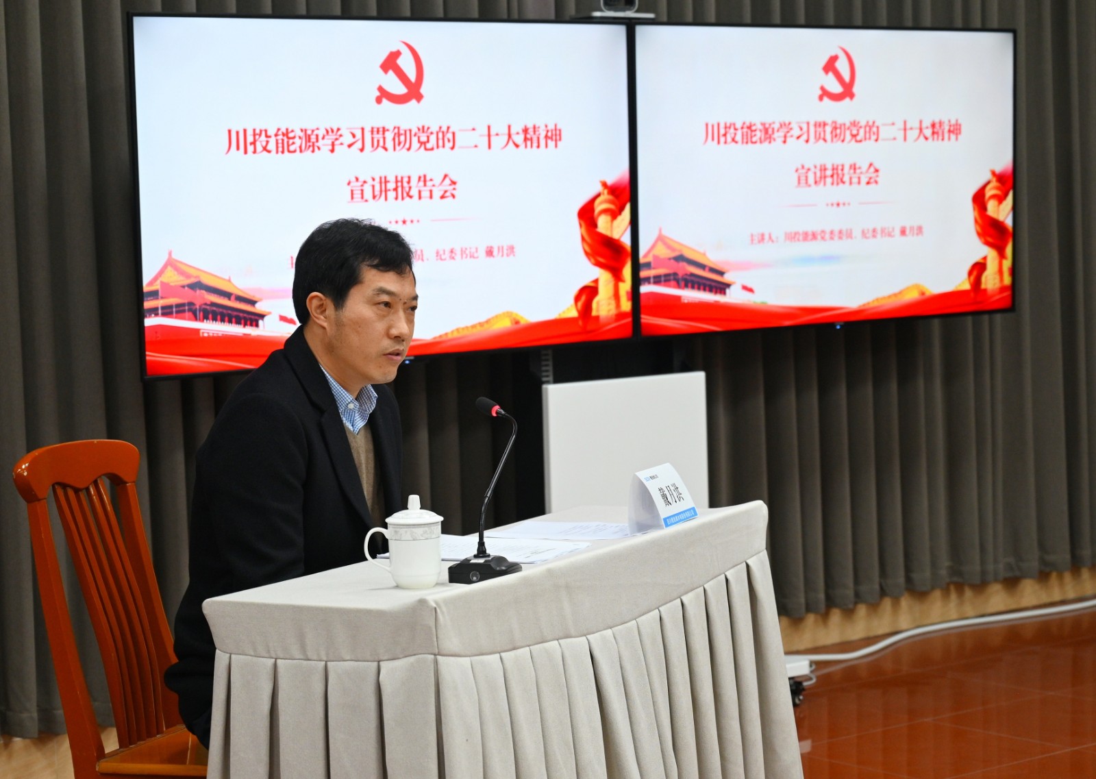 戴月洪从“深刻领会党的二十大的主题和主要成果、深刻领会过去5年的工作和新时代10年的伟大变革、深刻领会以中国式现代化全面推进中华民族伟大复兴的使命任务、深刻领会加强党的全面领导和全面从严治党的部署要求、深刻领会发扬斗争精神和坚持团结奋斗的时代要求、坚定推动党的二十大决策部署在公司落地见效”等内容进行了详细阐述和全面宣讲。