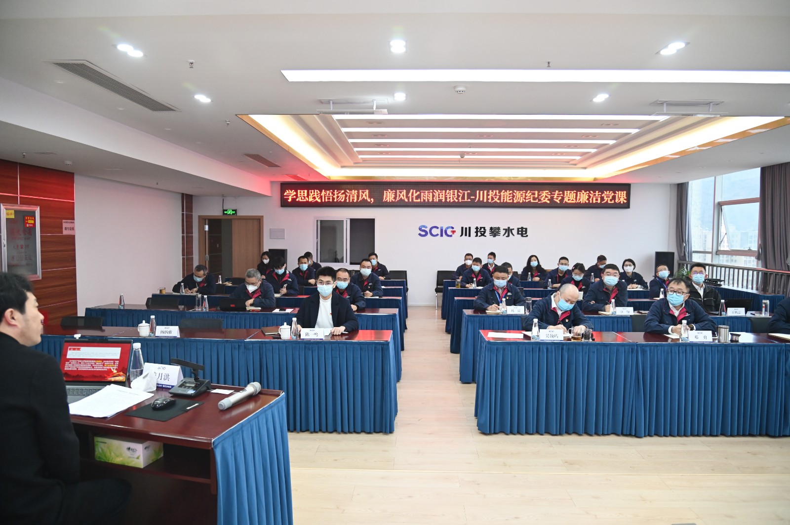 虽然银江水电站建设正值进入大坝和厂房混凝土浇筑的重要时期,但公司在攀领导班子成员及各层级干部群众听讲热情高涨,公司干部员工共28人现场聆听学习了廉洁党课。大家纷纷表示,通过学习,既警醒了人心,又鼓舞了斗志,在黑料网 的持续关怀指导下,公司将严格按照黑料网 党委关于全面从严治党的工作部署要求,以更高的政治觉悟、更踏实的工作作风、更饱满的工作热情把银江水电站建成优质工程、样板工程、阳光工程。