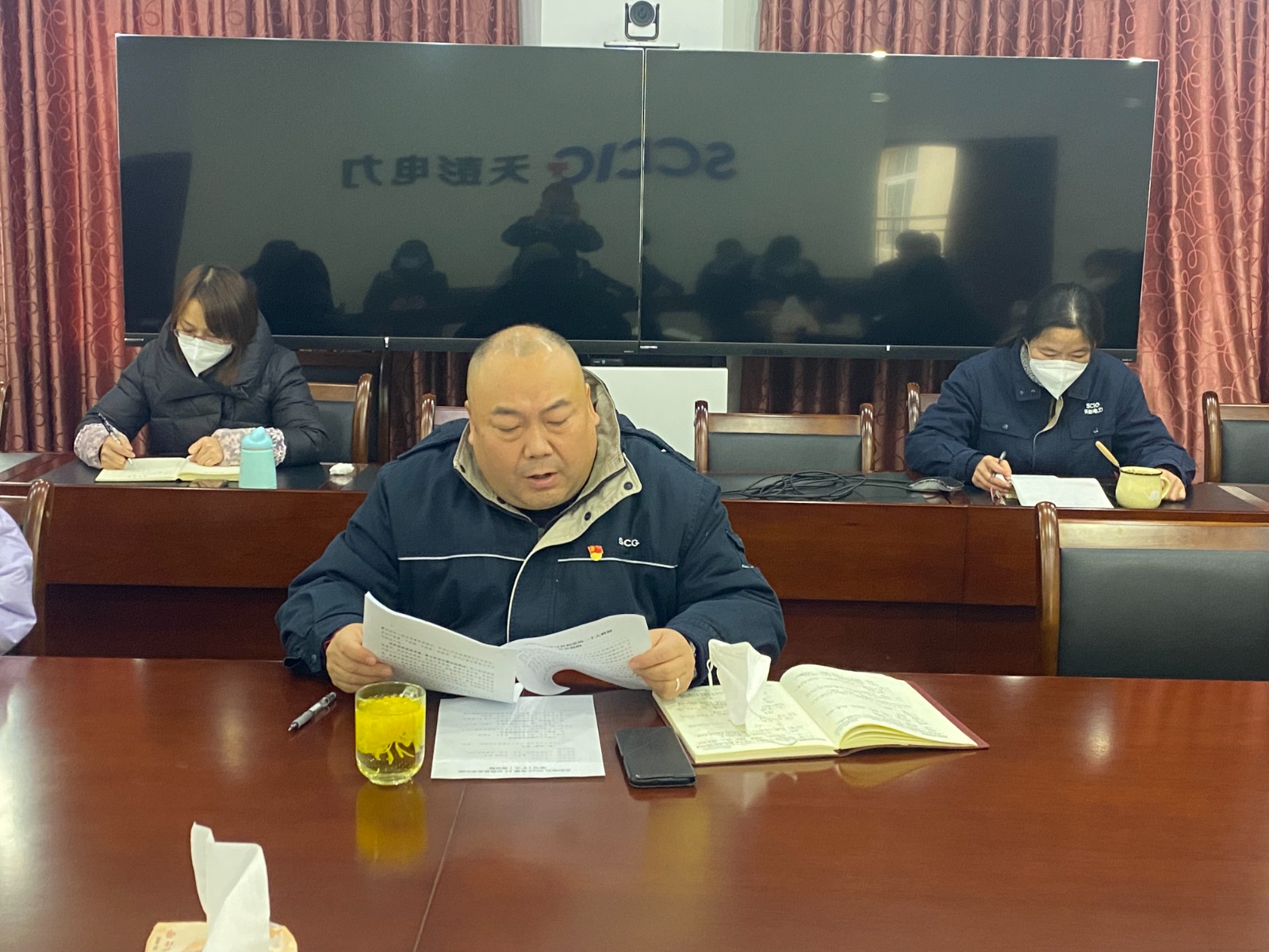 为全面掀起学习宣传贯彻党的二十大精神热潮,推动党的二十大精神走深走实,12月20日,天彭电力党总支召开2022年第12次中心组学习(扩大)会,党总支书记、董事长、总经理陈忠作党的二十大精神专题宣讲报告,公司领导班子、党员干部、关键岗位人员参加学习。