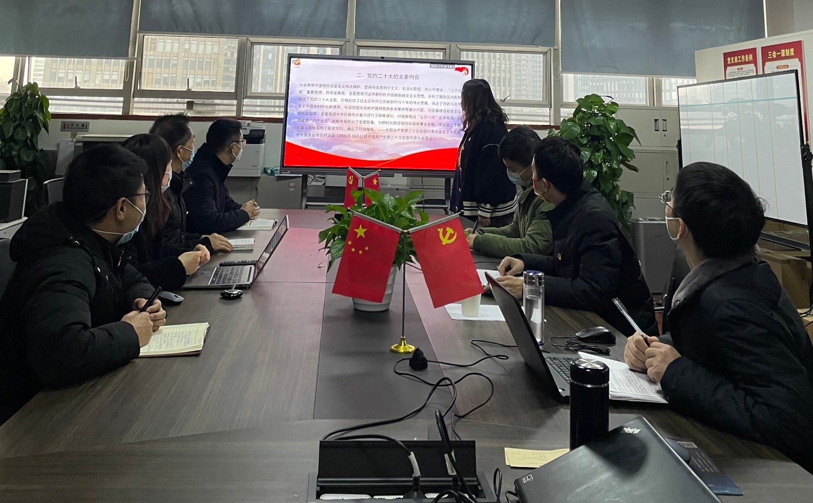 宣讲会上,第三党支部书记朱婷从党的二十大召开的时代背景、党的二十大内容、党的二十大重要意义、如何贯彻落实好党的二十大精神等四个方面开展了全面系统宣讲。她指出,党的二十大是在我国迈上全面建设社会主义现代化国家新征程、向第二个百年奋斗目标进军的关键时刻召开的一次十分重要的大会。她强调,支部全体党员要深入学习领会党的二十大精神,吃透原文思想,领会精神实质,坚持学深悟透,把学习宣传贯彻党的二十大精神与做好本职工作紧密结合起来,把学习宣传贯彻党的二十大精神统一到真抓实干、创新争先上,立足岗位多干实事,担当作为勇当先锋,团结带领全体员工高质量完成各项目标任务。