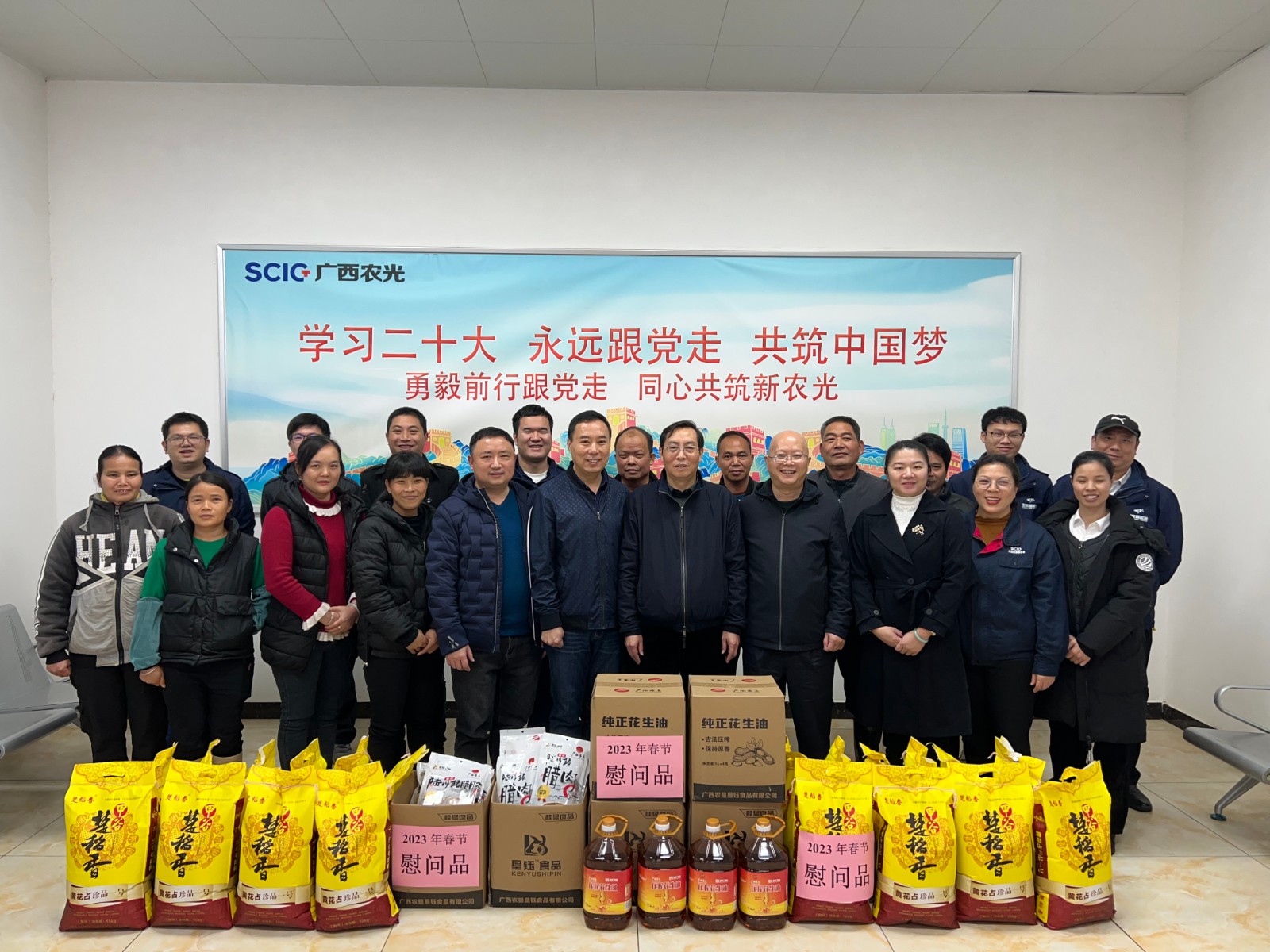会后,徐孝刚、周军对全体职工、运维单位人员进行了新春慰问,为大家送上了春节慰问品,并代表攀新能源公司向广西农光公司和运维单位全体员工致以新春的祝福!