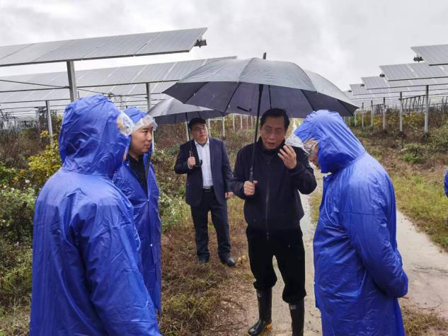 徐孝刚一行首先来到桂平光伏电站光伏现场,冒着大雨检查了光伏电站一期小龙虾养殖基地、二期园艺基地和澳洲淡水龙虾养殖基地等农光互补项目的安全运行情况;随后来到桂平升压站,在中控室听取了光伏电站2022年整体运行状况和发电量数据、安全管理、农业发展等情况汇报,徐孝刚强调,电站生产运行人员一定要严格按照国家安全生产法及电站安全管理制度的要求执行、落实安全生产工作,牢牢守住安全生产的底线和红线,确保电站安全管理可控、在控,稳定运行。