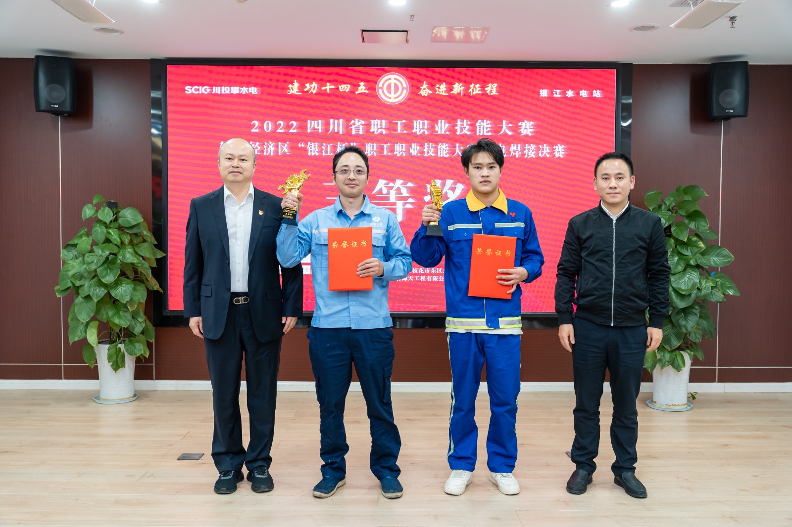 理论考试现场,选手们沉着冷静、奋笔疾书。实操现场弧光四溢、焊花飞舞,凭借丰富的专业知识和娴熟的业务技能,充分展示着各自技艺,在火花四溅的钢板上展现着精益求精的“工匠精神”。经过2天的激烈角逐,最终来自银江水电站各参建单位代表队的选手包揽个人前三等奖,水电五局何成州荣获个人一等奖,水电七局徐斌、广东源天谢张荣获个人二等奖, 广东源天金子哈、水电七局张志刚荣获个人三等奖。攀水电公司工会、攀枝花市技师学院等荣获大赛优秀组织奖。