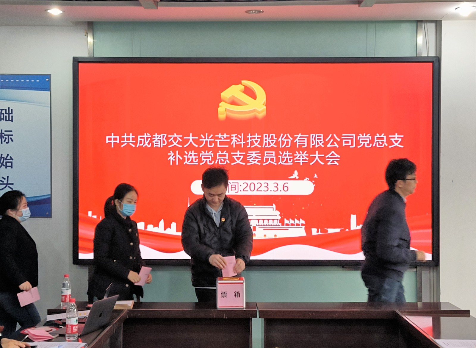 3月6日,为保障组织健全,充分发挥政治功能,坚持党对国有企业的全面领导,交大光芒党总支召开党员大会,以无记名投票和差额选举方式补选党总支委员1名,并召开总支部委员会以无记名投票和等额选举方式选举产生了新的党总支副书记。
