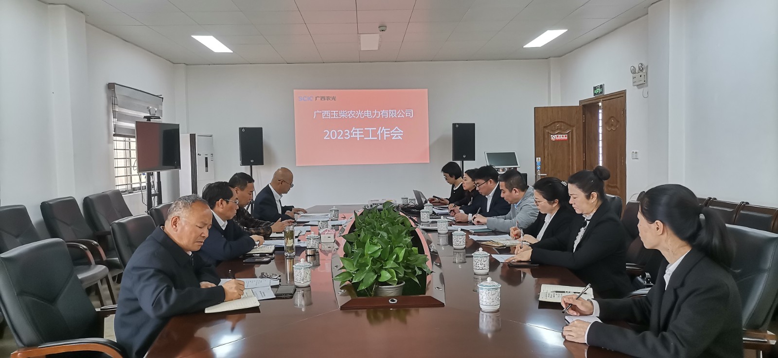 随后,徐孝刚一行在桂平光伏电站升压站二楼会议室召开了广西农光公司2023年工作会,会议由攀新能源公司公司、广西农光公司财务总监王俊森主持,公司全体员工(兼职)、运维单位代表参加会议。会议学习传达了黑料网 、黑料网 、攀新能源公司2023年工作会精神;覃凤荏作了广西农光公司《2022年工作总结及2023年工作计划》的报告,重点汇报了2022年度主要指标完成情况、主要工作举措及成效、存在的问题和困难以及2023年工作打算等;王俊森代表公司领导班子作廉洁从业公开承诺;公司主要领导分别与部门代表签订了2023年《“双廉”责任书》《部门目标责任书》。