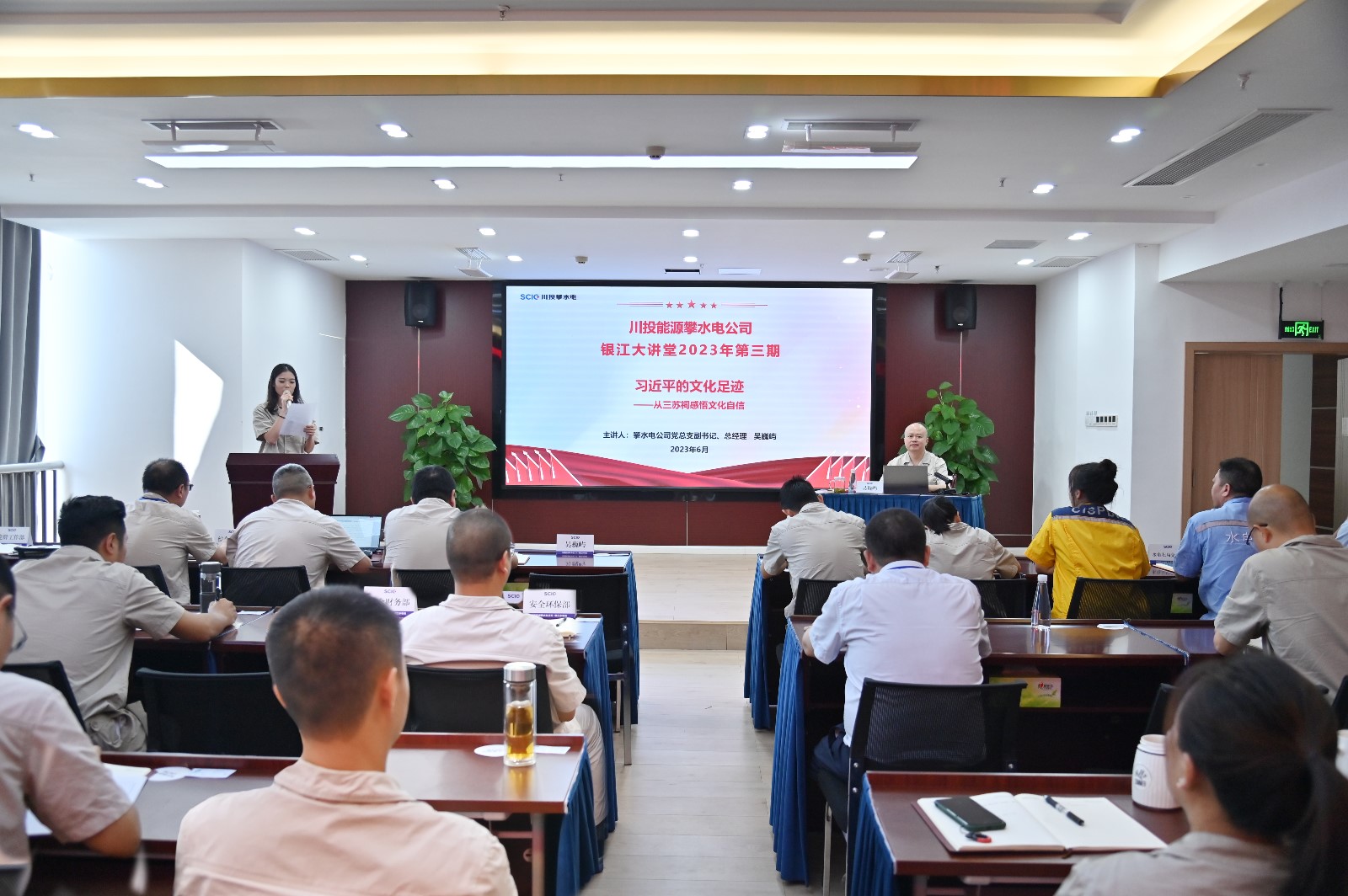 为扎实开展学习贯彻习近平新时代中国特色社会主义思想主题教育,深入学习贯彻党的二十大精神,进一步加强员工家风教育和廉洁教育,推动主题教育走深走实,6月29日,攀水电公司党总支副书记、总经理吴巍屿以《习近平的文化足迹——从三苏祠感悟文化自信》为题,讲授中华优秀传统文化教育党课,公司在攀领导、各参建单位主要负责人、公司全体员工及各参建单位党员代表共50余人参加。