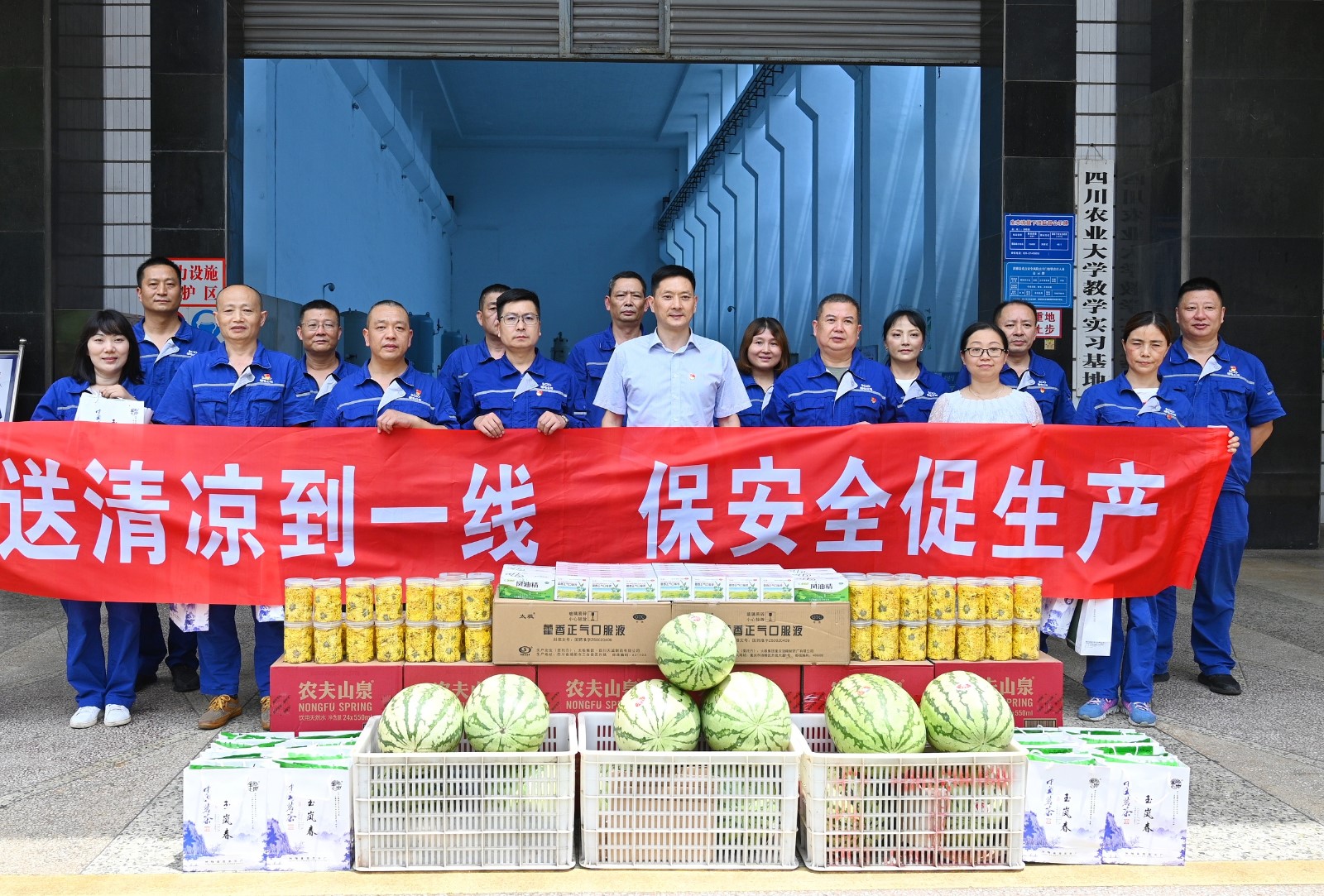 冉兰平一行带着对一线职工的牵挂与关怀,冒着酷暑来到槽渔滩公司电厂,为奋战在工作岗位上的一线职工送上夏日里的一份心意。冉兰平向电厂职工送上了菊花茶、藿香正气液、清凉油、西瓜等防暑降温用品,并叮嘱他们在岗位上做好防暑降温、安全生产工作。