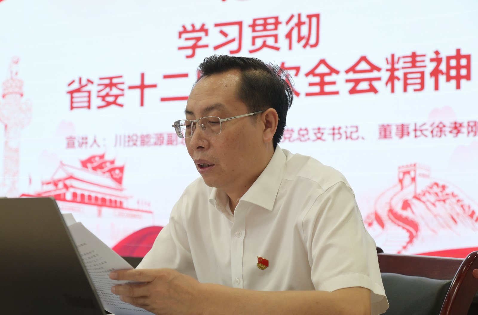徐孝刚强调,一是要全面落实习近平总书记对四川工作系列重要指示精神,深入实施“四化同步、城乡融合、五区共兴”发展战略,全面准确把握省委十二届三次全会精神;二是公司领导班子成员要带头在分管部门和指导联系支部进行宣讲,抓好学习宣传贯彻,各支部和广大党员干部要切实把思想和行动统一到省委全会精神上来;三是要深刻领会全会精神,牢牢把握高质量发展这个首要任务,切实把学习成果转化为履职担当、攻坚克难的实际行动,确保省委十二届三次全会精神在攀水电公司和银江水电站落地落实、深入人心,全力推进各项工作任务高质量完成。