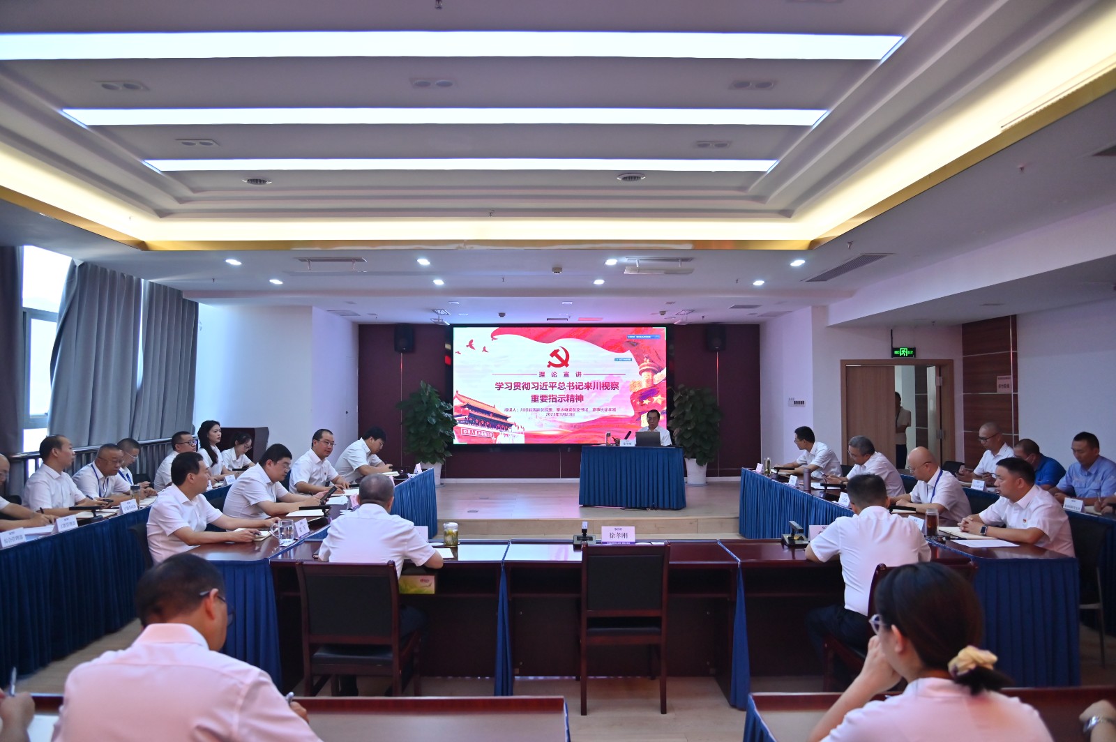 为深入贯彻落实习近平总书记来川视察重要指示精神,推动习近平总书记来川视察重要指示精神落地落实,9月23日下午,黑料网 副总经理、攀水电公司党总支书记、董事长徐孝刚带头进行学习贯彻习近平总书记来川视察重要指示精神专题宣讲。公司全体党员、职工,各参建单位党员职工代表共计45人参加此次宣讲会。