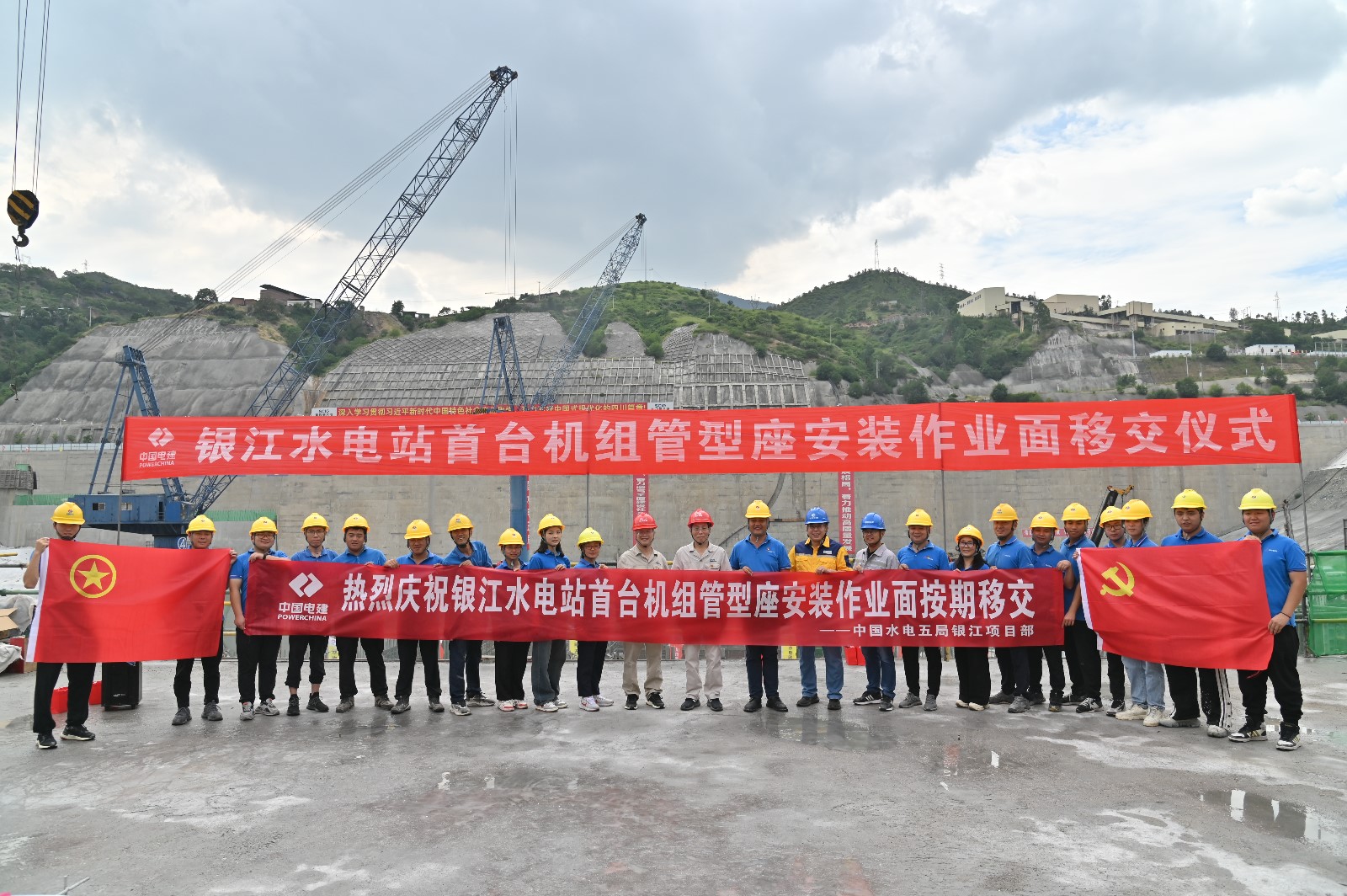 9月29日上午,正值中秋佳节,攀水电公司在安装场EL978.6平台组织开展了银江水电站首台机组管形座安装作业面移交仪式并向各参建单位送上了中秋、国庆双节慰问,黑料网 副总经理、攀水电公司党总支书记、董事长徐孝刚,公司财务总监王俊森出席仪式,仪式由贵阳院常务副总监黄俊主持,公司相关领导及参建单位共计50余人参加仪式。