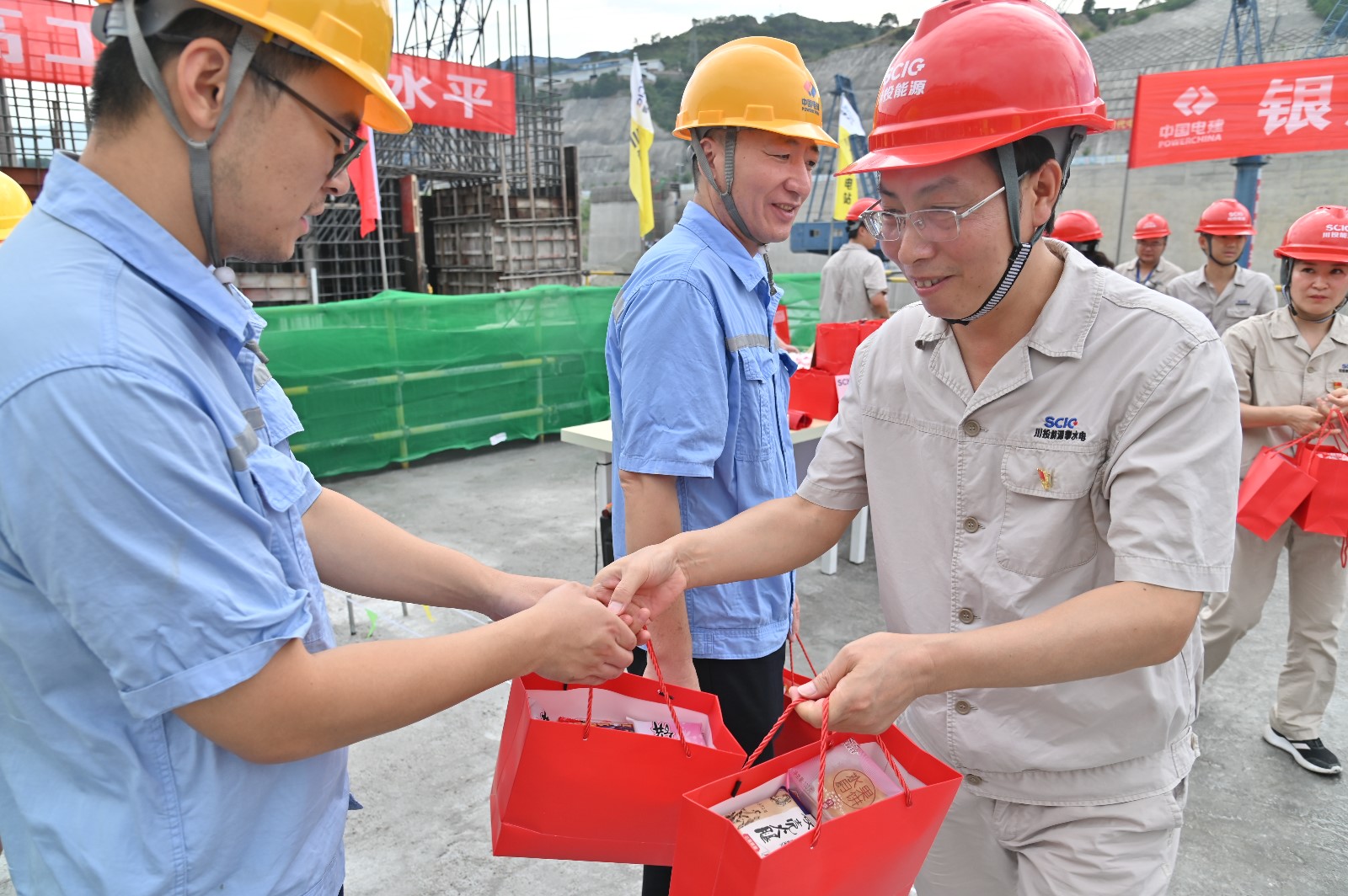 仪式最后,徐孝刚一行代表攀水电公司向中秋佳节仍坚守在施工一线的全体人员送上了中秋、国庆节日慰问。