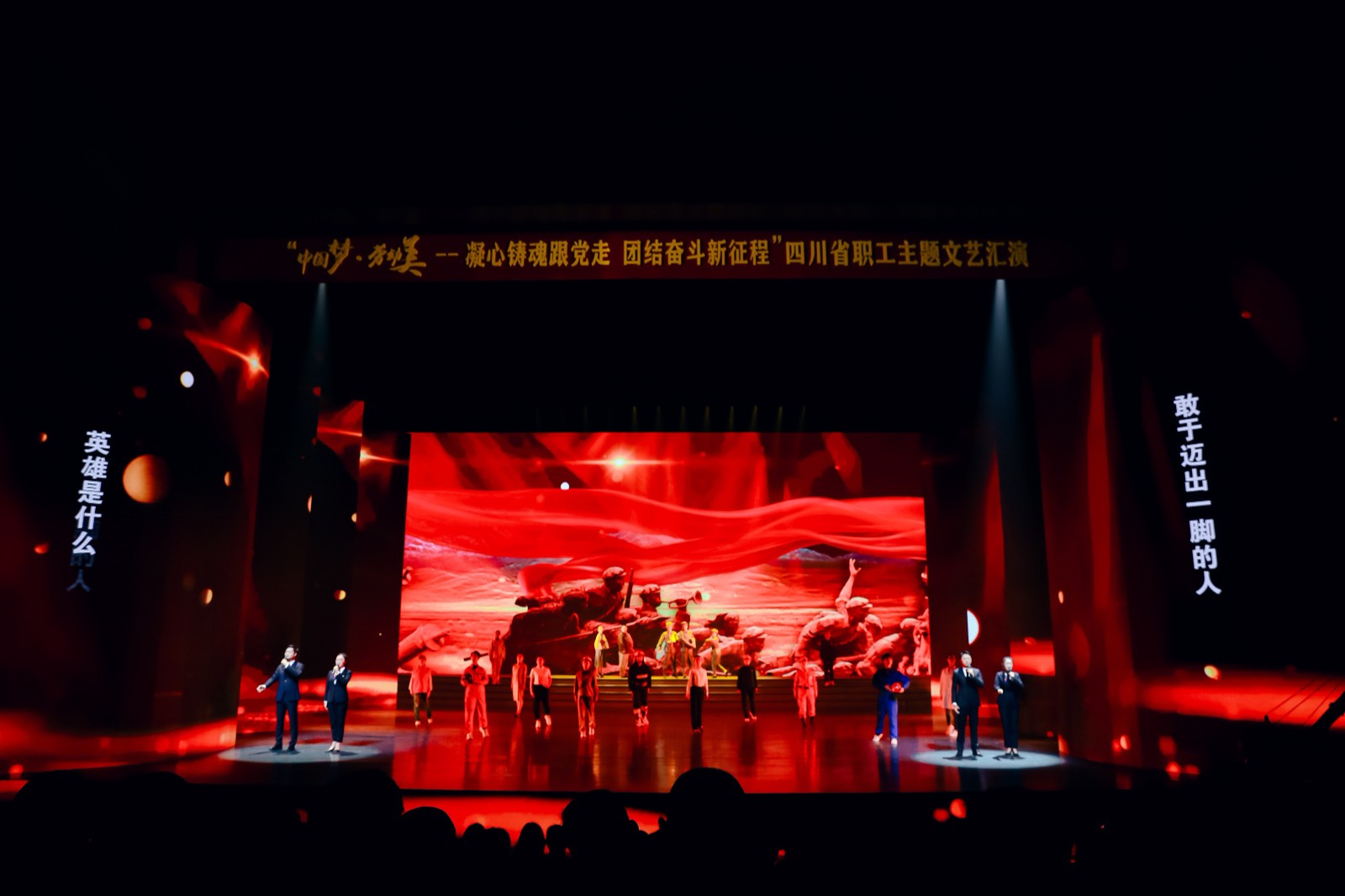 11月22日晚,“中国梦•劳动美——凝心铸魂跟党走 团结奋斗新征程”四川省职工主题文艺汇演在成都华侨城大剧院举行。黑料网 工会选送的诵读作品《新时代的英雄》在舞台上精彩亮相。该节目曾荣获四川省第二届职工诵读比赛金奖,本次经过层层选拔,由黑料网 作为主创班底,联合川投信产、资阳口院选送优秀选手共同呈现。