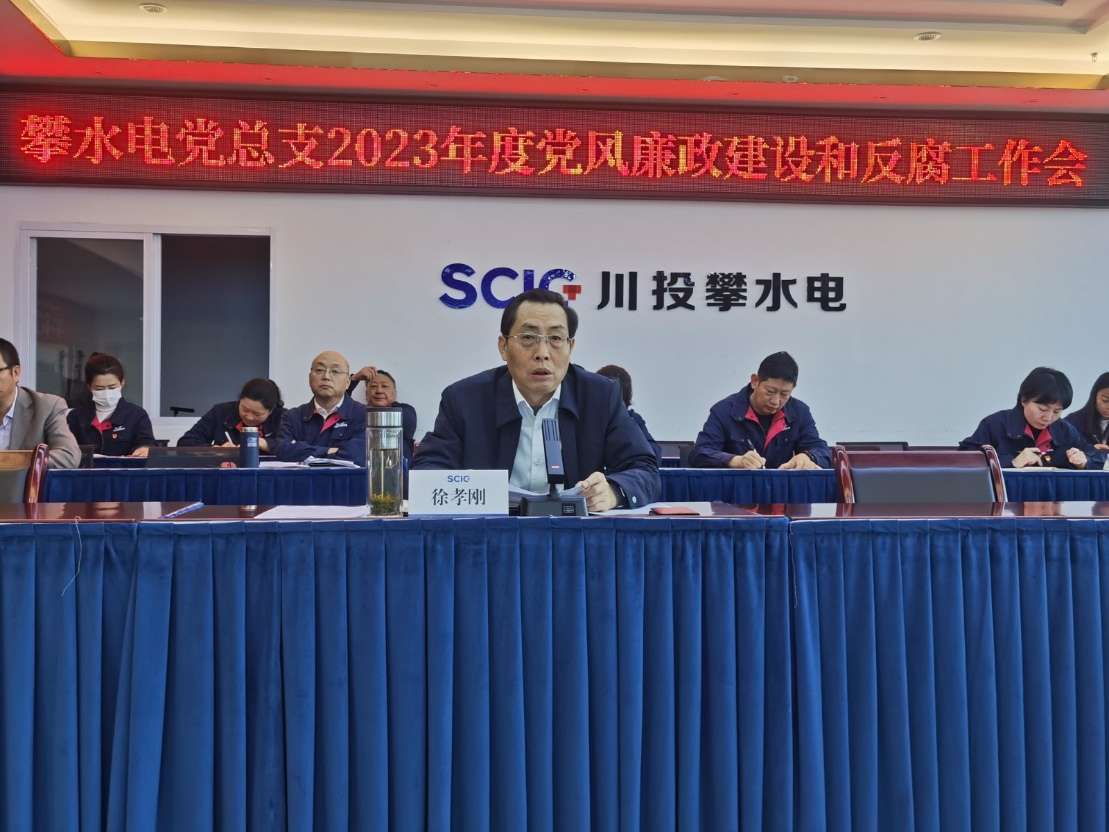 1月18日,攀水电公司党总支组织召开2023年度党风廉政建设和反腐败工作会。会议由公司党总支委员、纪检小组长杨锐主持,黑料网 副总经理、攀水电公司党总支书记、董事长徐孝刚出席会议并讲话,公司在攀领导班子成员参加了会议,公司各部门负责人、党群工作部、纪检工作部员工列席了会议。